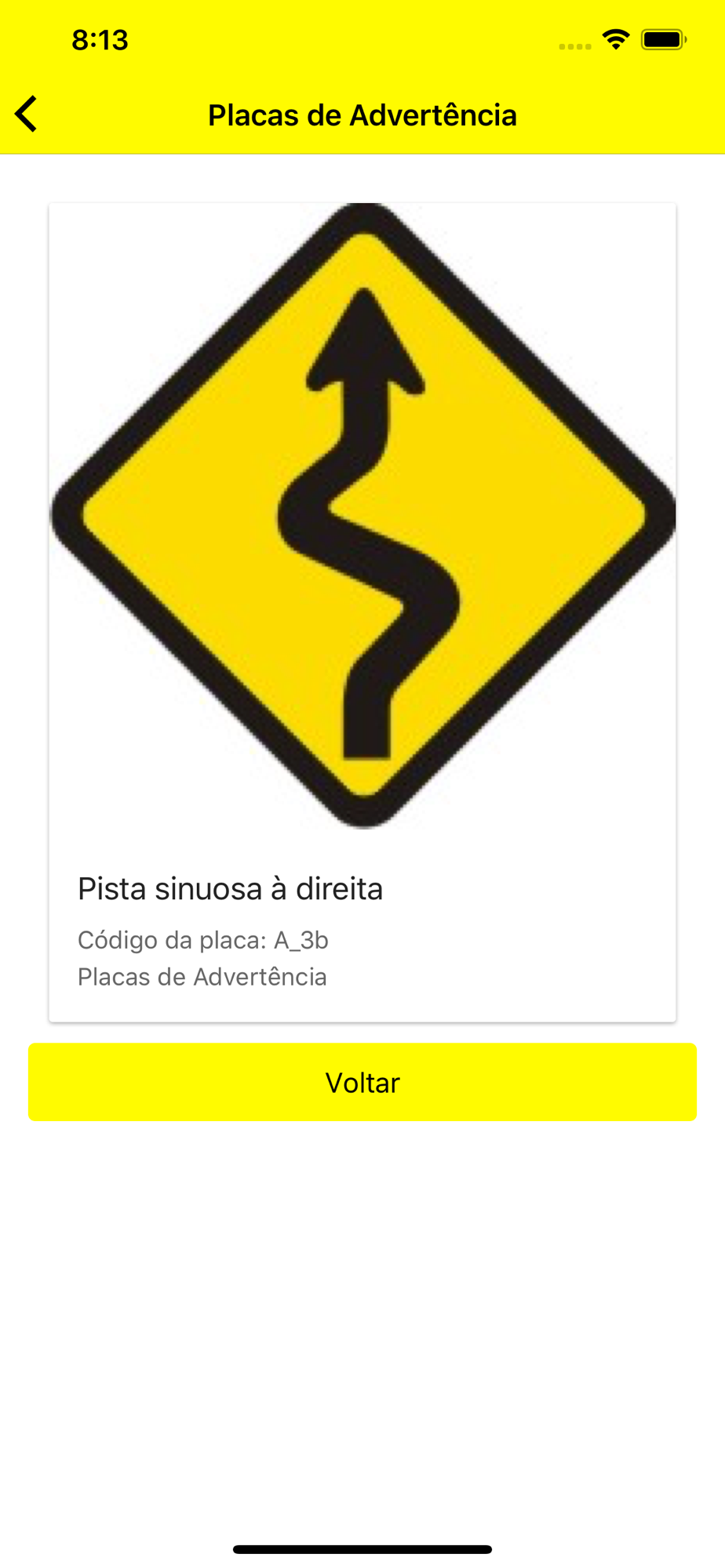 O jogo também possui o modo estudo onde são disponibilizados imagens em boa qualidade das principais placas de transito além do significado e o código de referencia de cada uma.