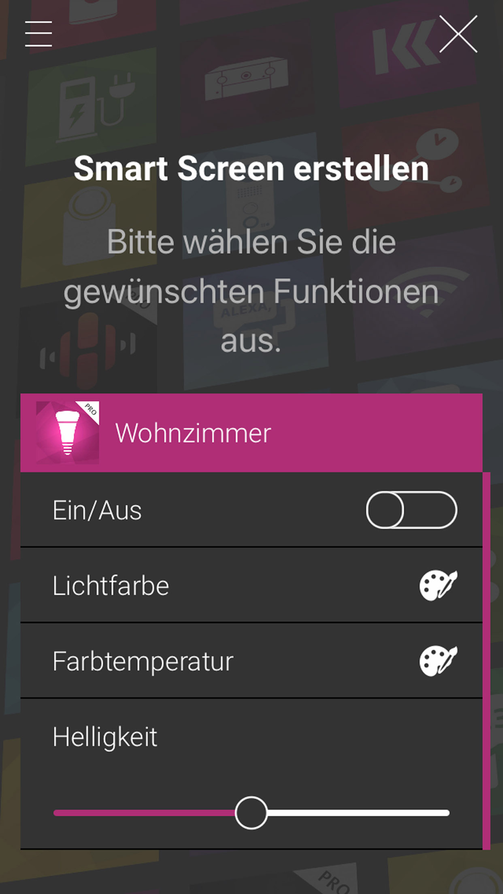 Whether Philips® hue, Panasonic®, Sonos, Nuki or DoorBird: Many of the Smart Home Apps available from the BAB APP MARKET can now be controlled directly with your smartphone. Download »Smart Screens« and connect your smartphone to the APP MODULE. Create your first smart screen in just a few minutes and combine functions of different products - easily, individually. This way you control different IoT and KNX components in one interface.