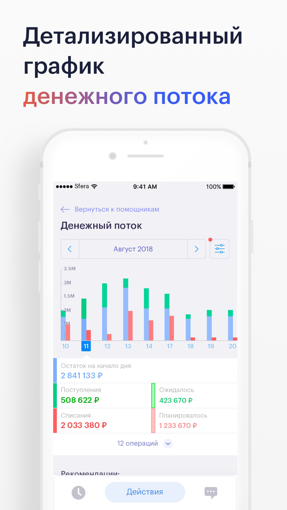 • Стройте планы на основе подробной финансовой аналитики: Сфера прогнозирует денежный поток на несколько месяцев вперед и предупреждает о вероятности кассового разрыва.