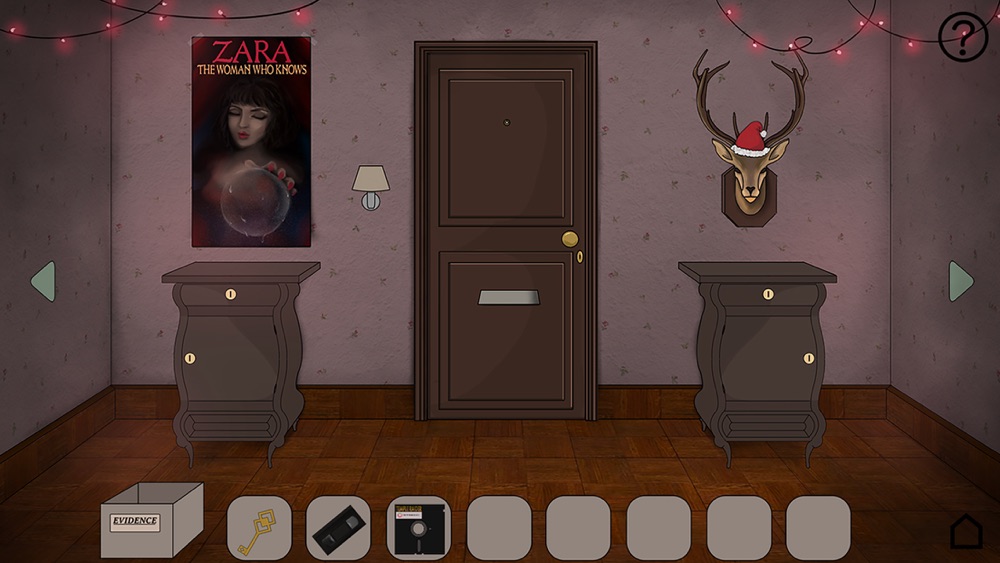 Tap the arrows to move around the room. Interact with objects by touching them. Select an item from your inventory and tap anywhere on the scene to use it.