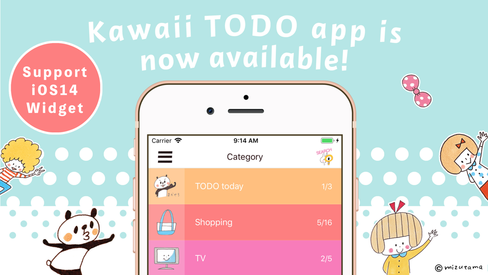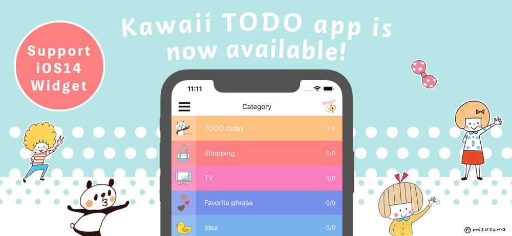 Whenever wherever you can use and see mizutama's cute illustration on your todo lists.