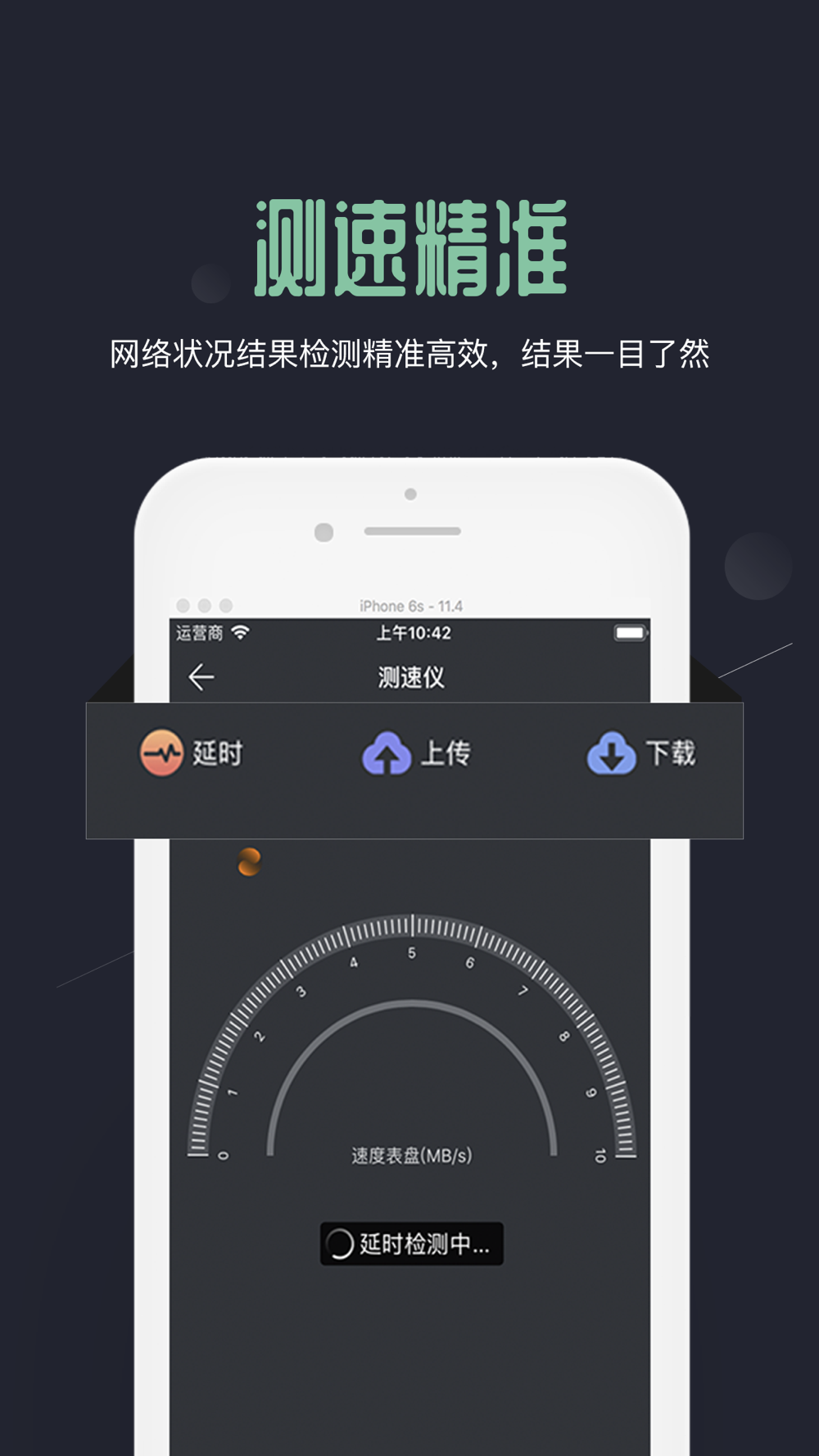 WiFi测速仪是一款简单易用且精准测试的网速测速工具。一键检测WiFi、4G、宽带、路由器带宽速度。界面简洁,操作简单。