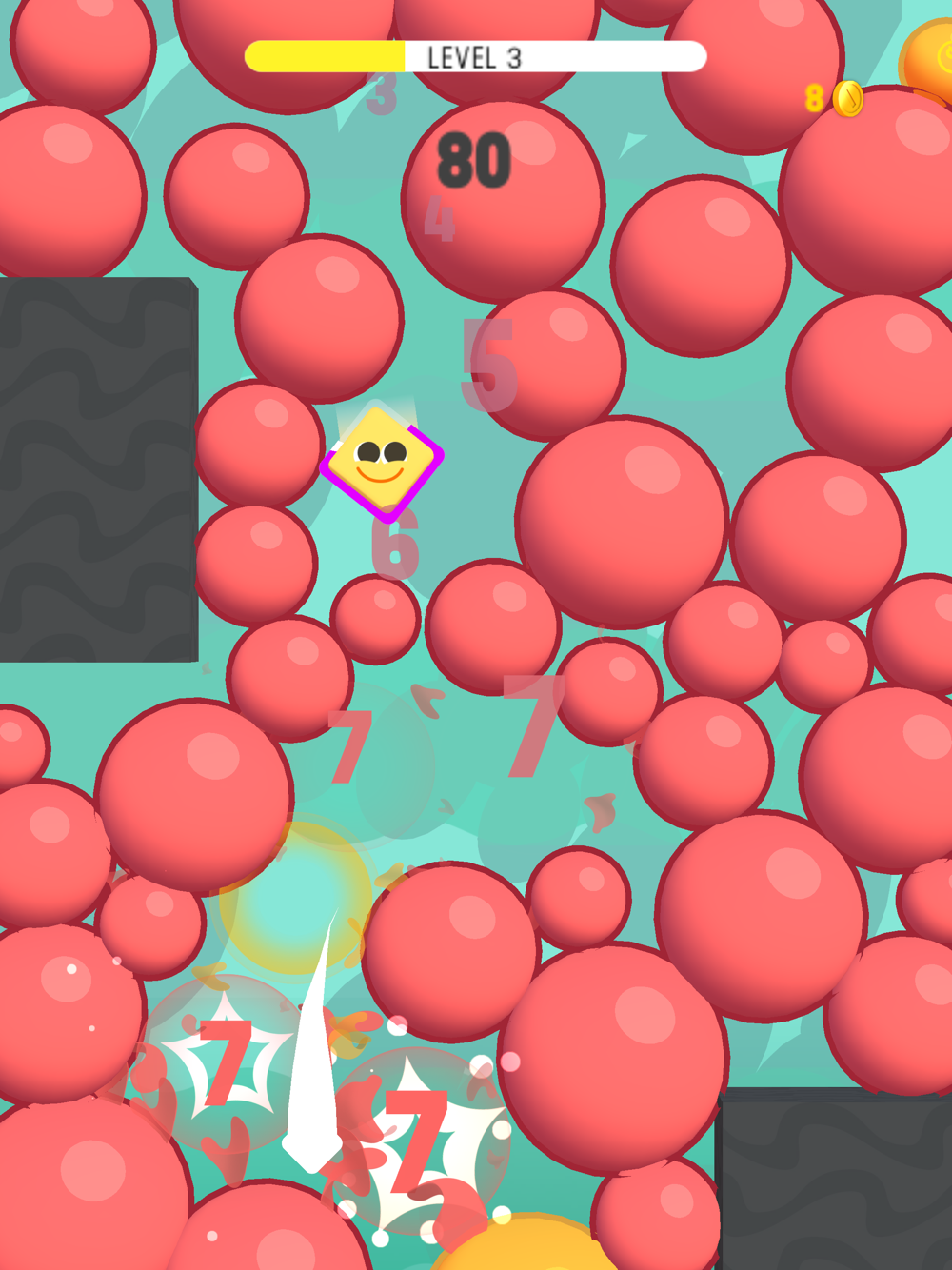 Pop the balloons and fall down. But be careful not to hit the obstacles or you’ll get burned. You can play it slow and precise or fast and risky, it’s up to you!