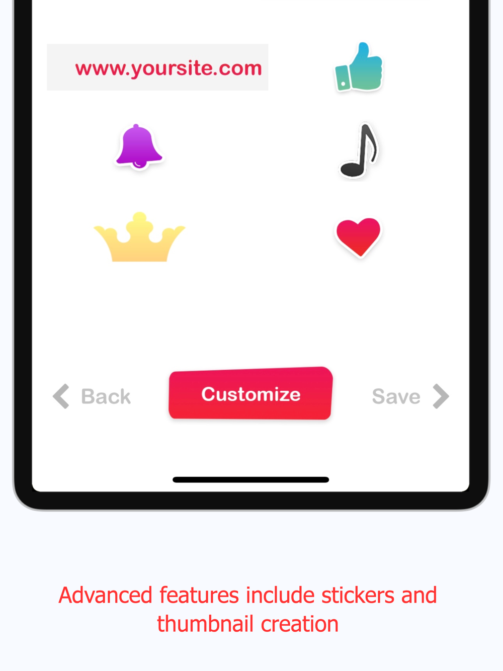 - Advanced features for older kids/teens, such as thumbnail creation, stickers, delayed intro, etc.