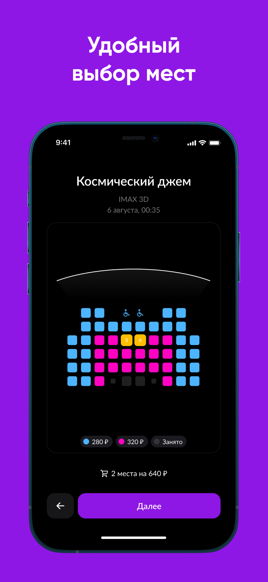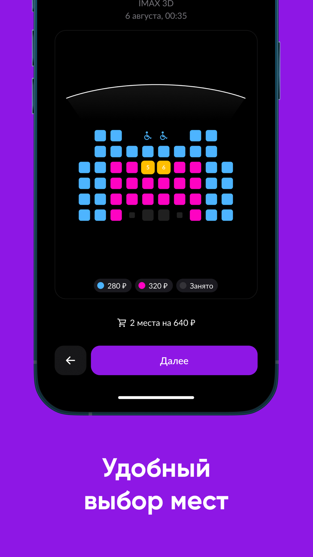 - Выбор сеансов исходя из ваших предпочтений по формату фильма, времени, типу зала и меток