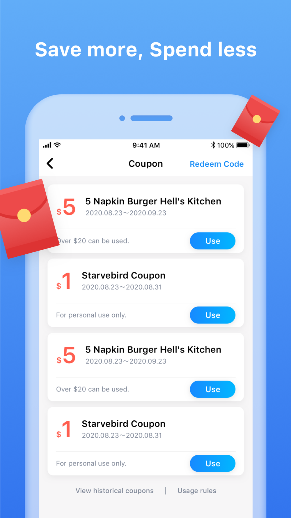 Self Pick-up: Order on our app and pick-up meals at restaurants. Skip the line, and enjoy further savings.