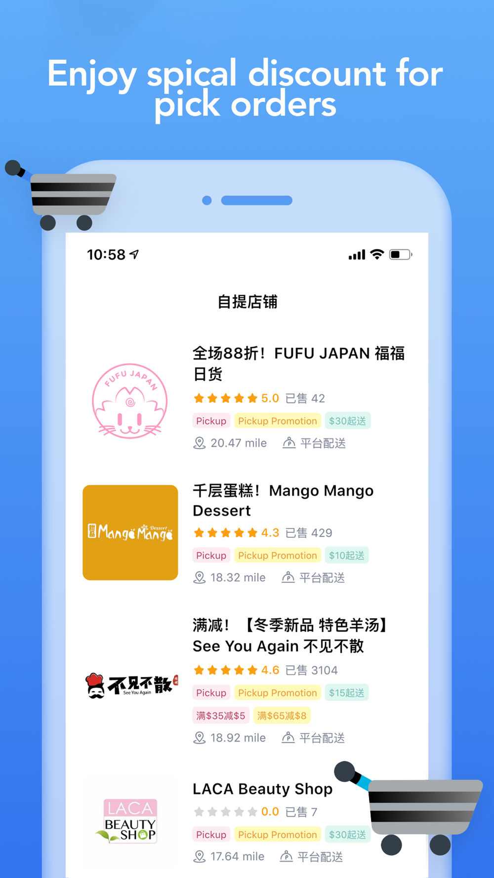 Pay less Enjoy more: Door to door delivery, no service fee, no small cart fee, free delivery as long as you order certain amount.