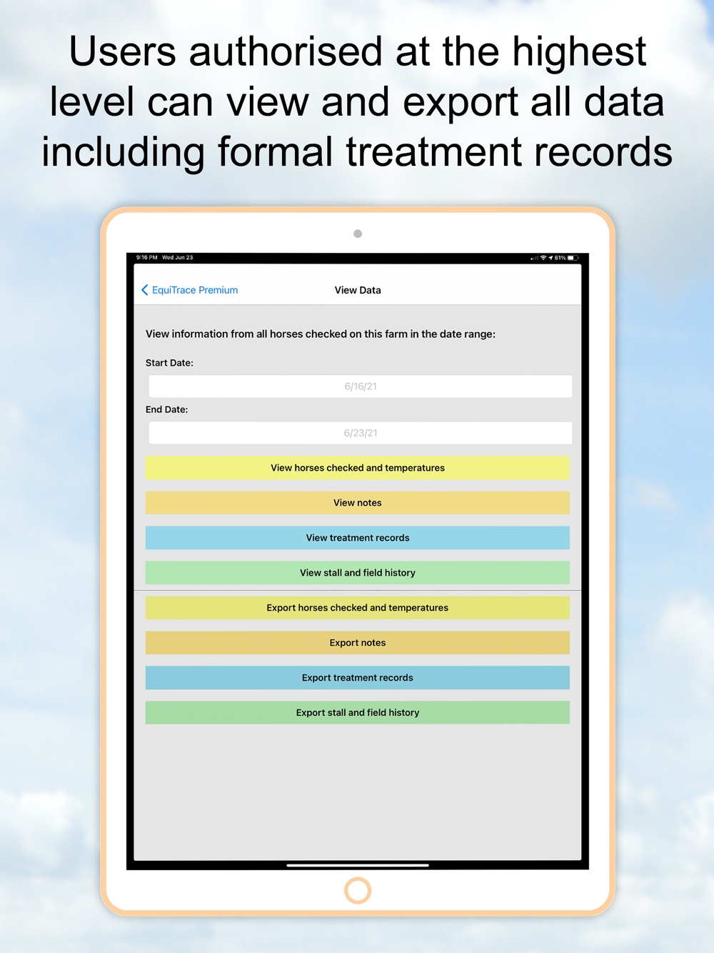 • Data can be entered into the system at the side of the horse, keep records complete and accurate.