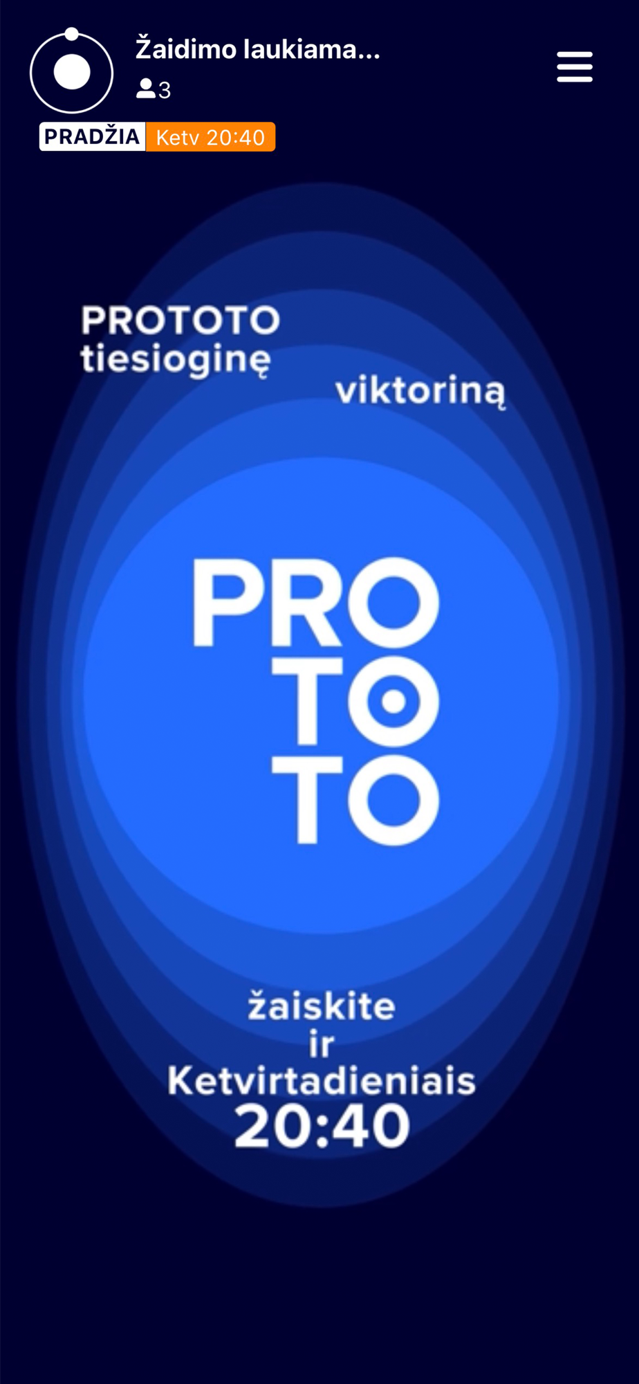 LRT PROTOTO – tai programėlė tiems, kas ne tik daug žino, bet ir nori sužinoti. Kiekvieną ketvirtadienį 20:40 val. gyvo žaidimo metu varžykitės su žaidėjais iš visos Lietuvos ir laimėkite prizus. Žiūrite „Auksinį protą“ ar „Lietuvos tūkstantmečio vaikus“? Tuomet įsijunkite programėlę LRT PROTOTO ir žaiskite kartu su žaidimų dalyviais. Taip žiūrėti televizorių bus dar įdomiau!