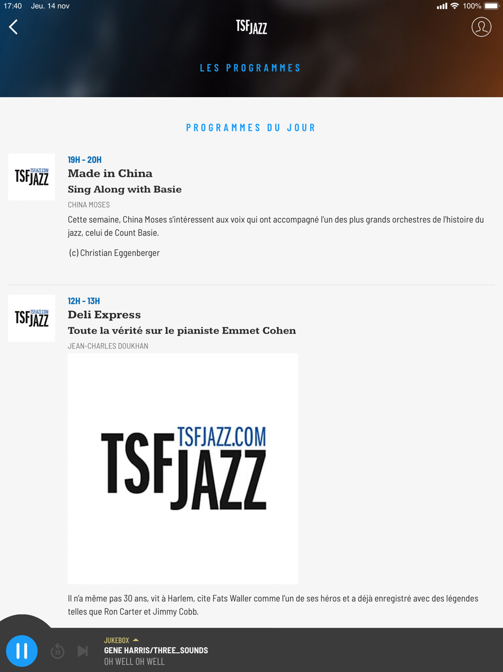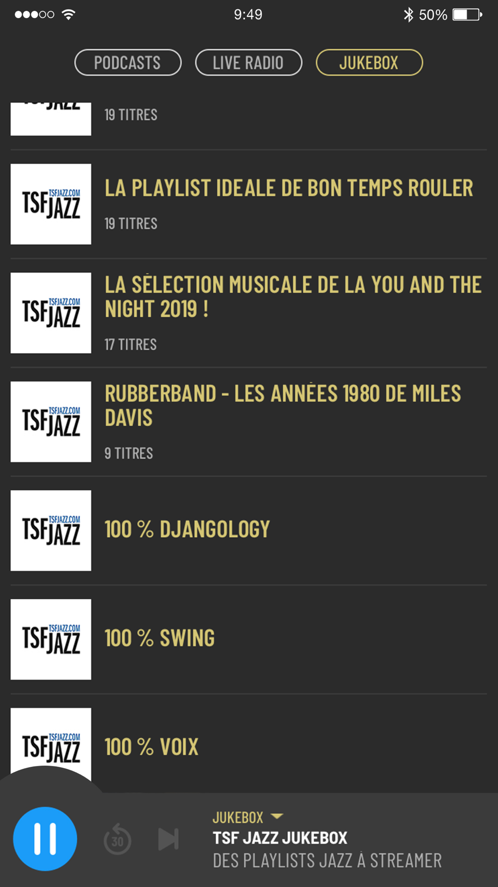 - Ecouter la radio de TSF Jazz en direct et sortir de l'application tout en continuant l'écoute en arrière plan, pour groover, swinger où vous voulez, quand vous voulez, avec qui vous voulez.