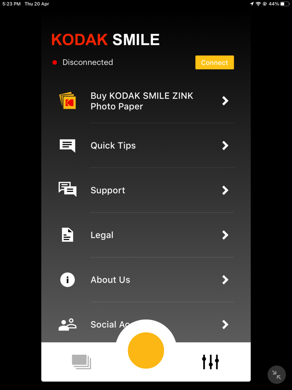 The KODAK SMILE app is designed to work in sync seamlessly with your KODAK SMILE instant printer. Capture, edit, print, and share your favorite photos; create your very own augmented reality videos from a single snapshot; or try connect to your favorite social networks to access nostalgic moments and upload new memories with the tap of a button. Take new photos or customize existing ones with distinctive borders, view filters from within the in-app camera, and apply a variety of fun stickers! When you’re finished, preview and print your pictures using the KODAK SMILE printer, or share them directly to any of your connected social accounts. Download the app today and join the #KodakKlique!