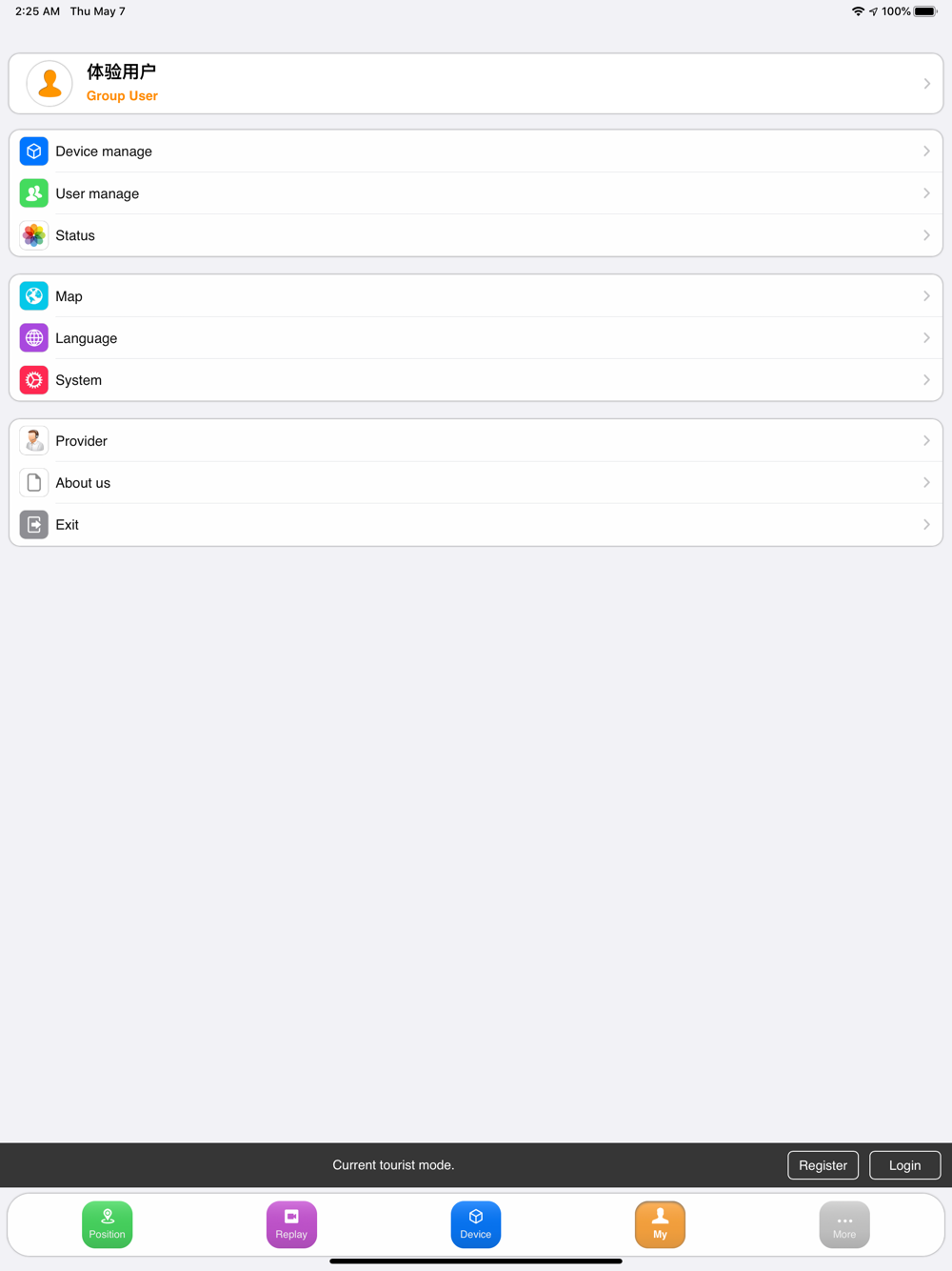 本APP广泛应用于: 营运车辆监管,私家车辆防盗,金融资产风险控制,物流货物跟踪,老人小孩宠物监护防走失,新能源车辆数据获取,燃油车排放监管,物联网数据远程采集等。