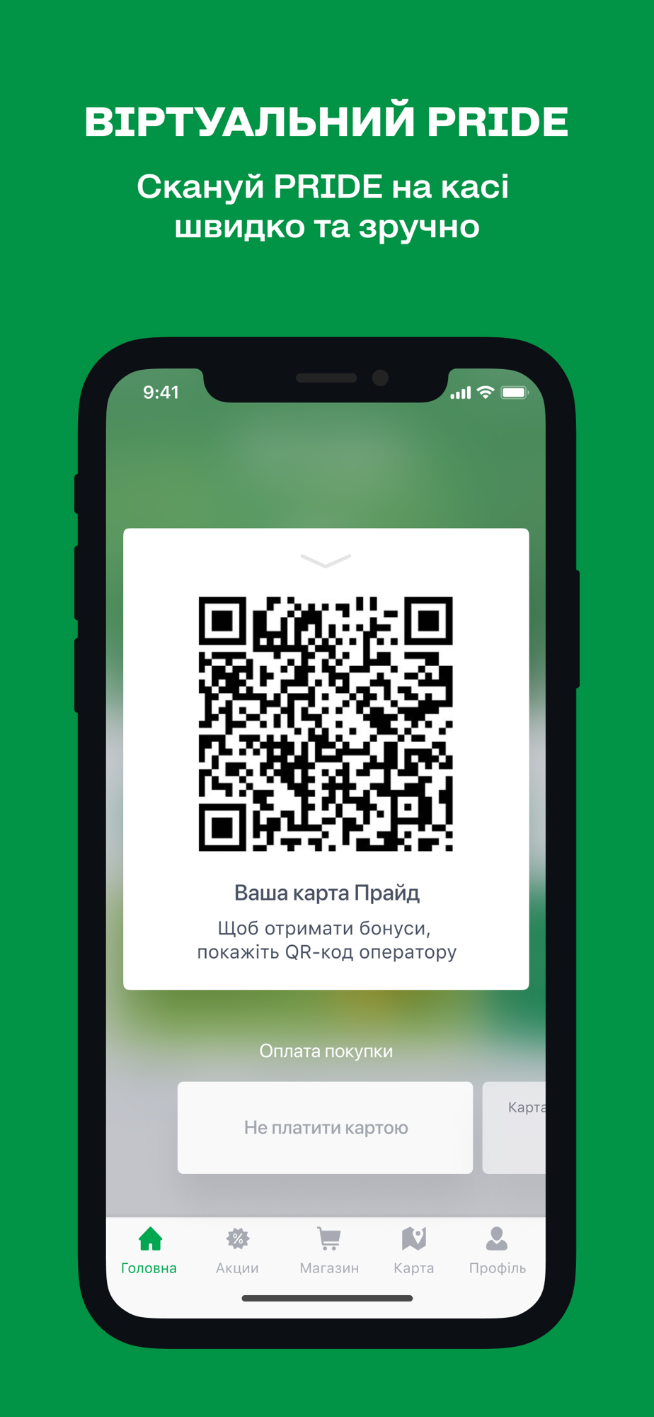 • Кешбек PRIDE. Купуй у партнерів через застосунок PRIDE та отримуй кешбек бонусами за свої покупки