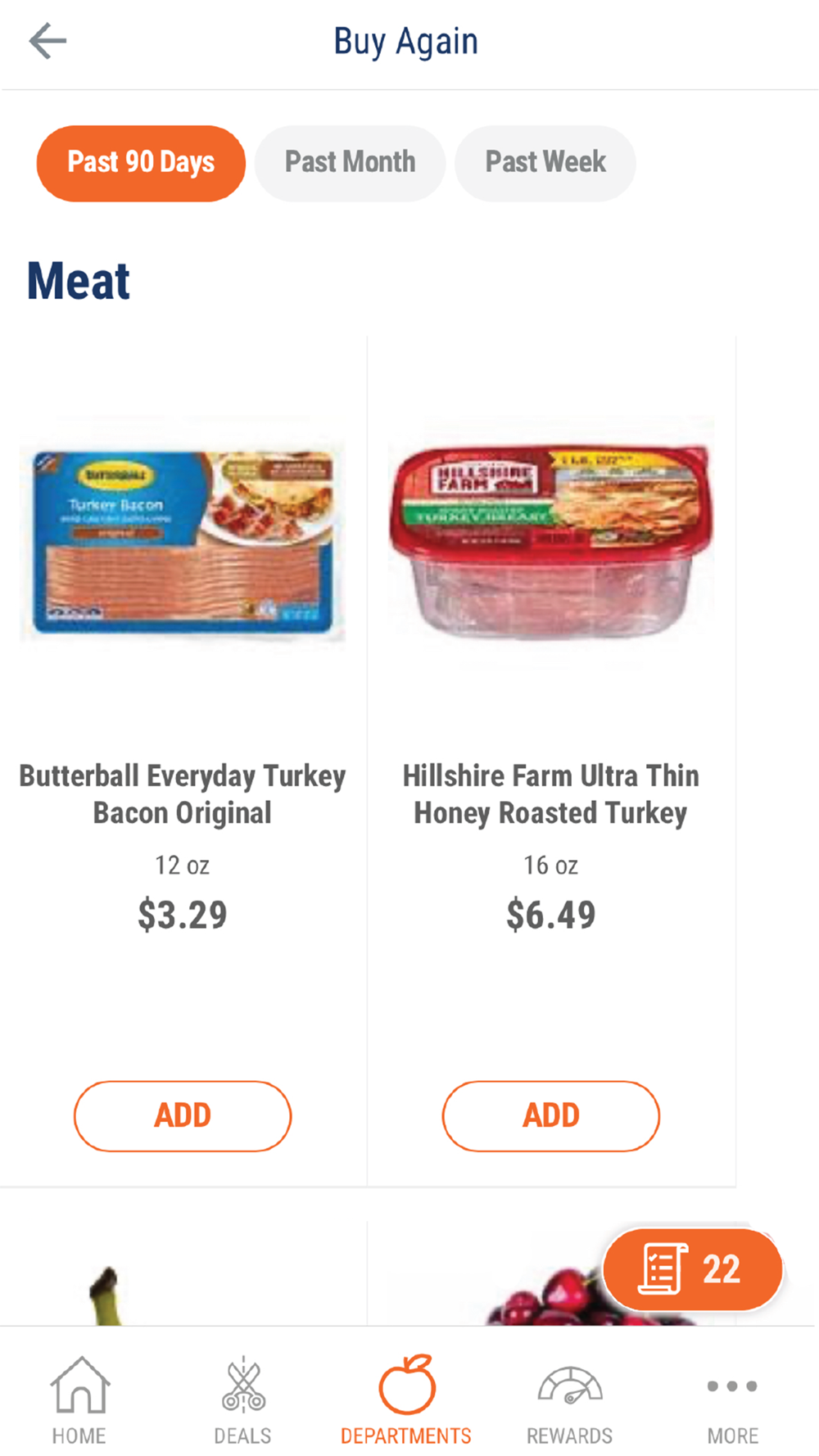 • View your purchase history and easily build your cart or list with the items you buy most often.