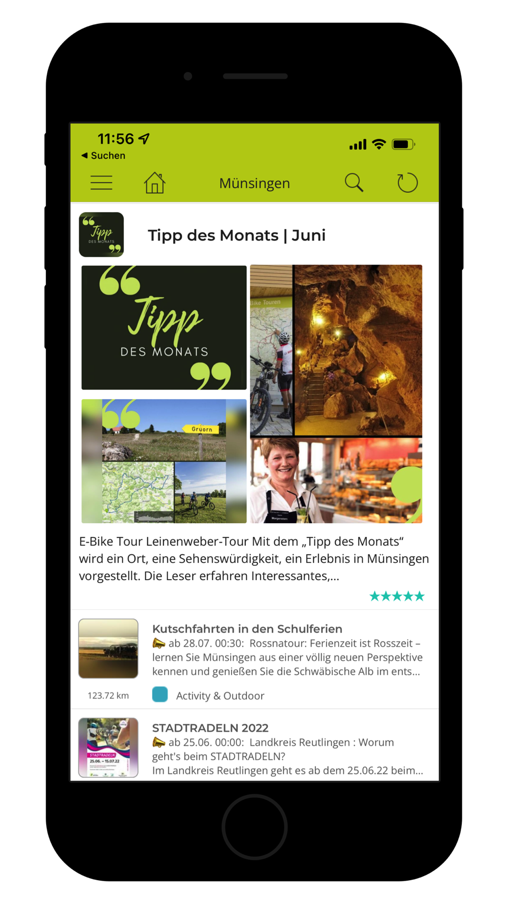 Die Münsingen App ist eine neue Art von regionaler App für Münsingen, die Schwäbische Alb und das Biosphärengebiet Schwäbische Alb: umfassend, übersichtlich, aktuell und jeden Tag neu.