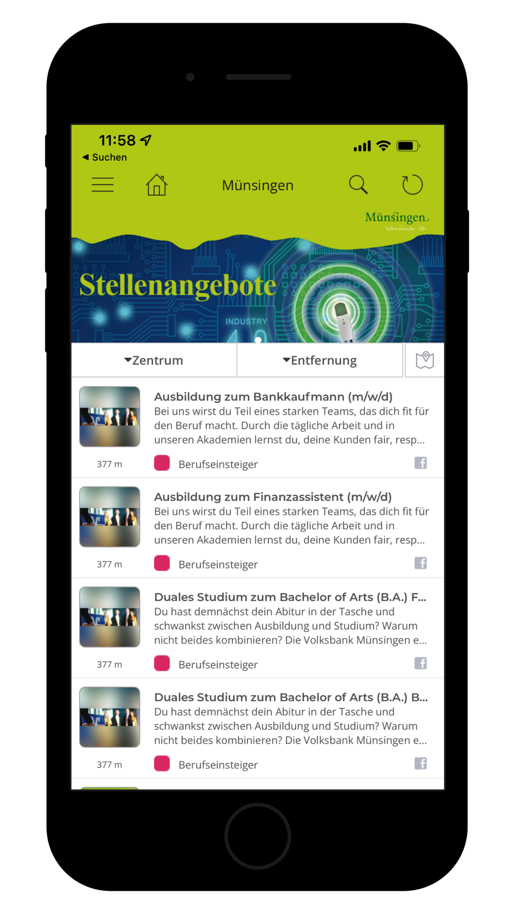 Die Münsingen App wurde geschaffen, um die lokalen Unternehmen mit den Konsumenten digital zusammen zu bringen. In der Münsingen App können alle Unternehmen, Vereine, Institutionen aus der Stadt und den Stadtteilen Münsingen und die Unternehmen aus den Orten der Verwaltungsgemeinschaft: Gomadingen und Mehrstetten, sowie alle Mitglieder des Gewerbevereins ProMünsingen Ihre Angebote und Veranstaltungen digital kommunizieren.