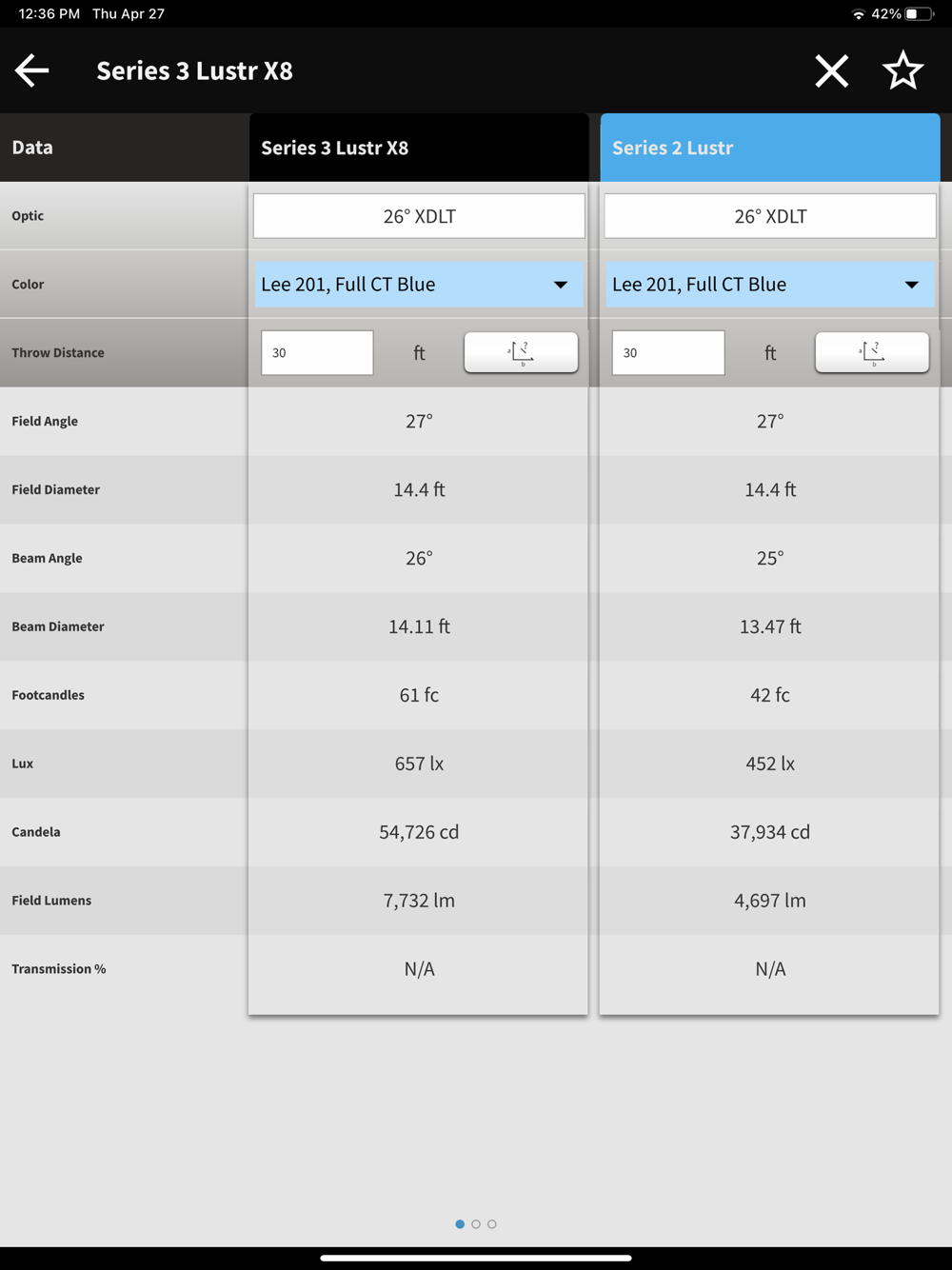Designers, specifiers, and lighting enthusiasts can easily configure and display customized photometrics for each fixture in any color, compare products, and save favorites. Full gel libraries are included with DMX and full spectral values so you can easily reproduce any gel color you’ve used in the past. Select any ETC fixture and its array and quickly get condensed datasheet information.
