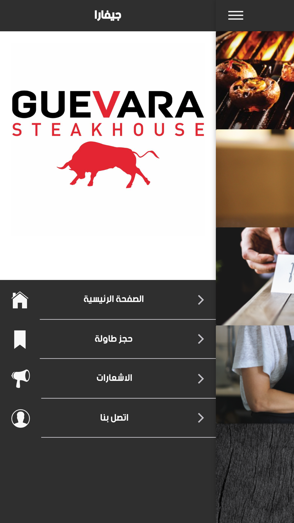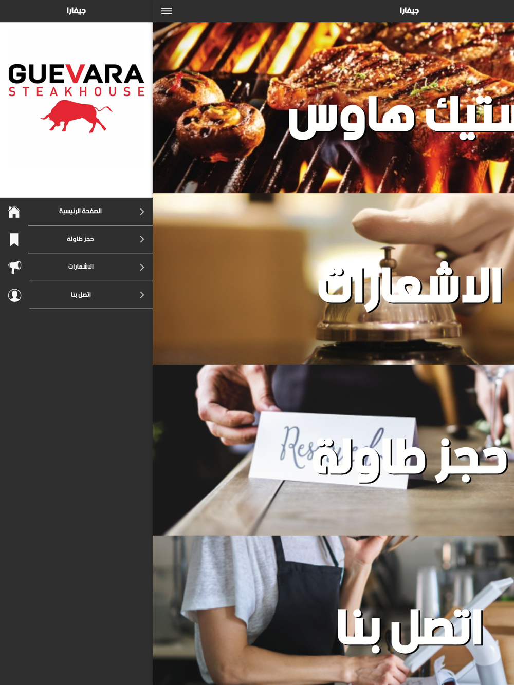 التطبيق الخاص بمطعم جيفارا الكائن في بغداد المنصور بالامكان مشاهدة كافة منيو الطعام في التطبيق و وسائل الاتصال بالمطعم و يمكنك حجز طاولة من خلال التطبيق