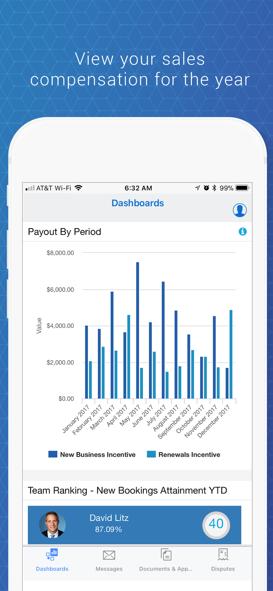 With the SAP Commissions mobile app for iPhone and iPad, you can track your sales compensation in real time. As a sales person, you’re always on the go. Now you have access to: