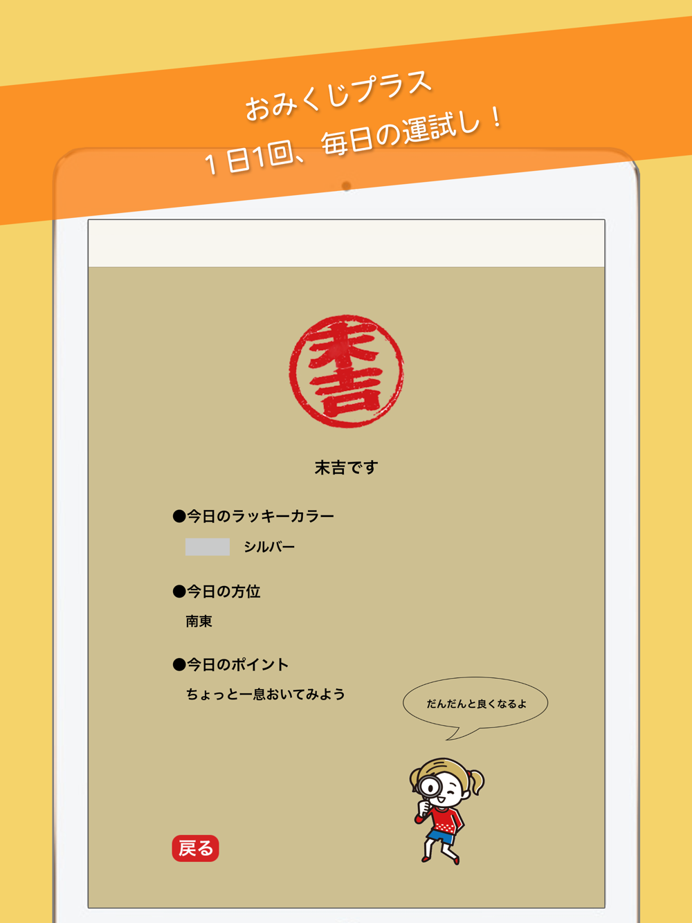 ラッキーカラーや方位もわかるので、1日のはじめにおみくじをひいてみましょう!