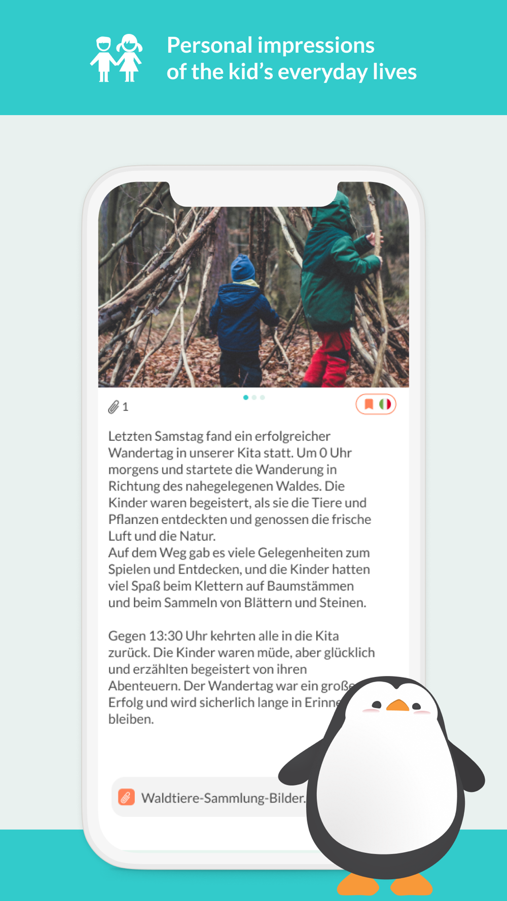 - Closer to home: Get news and impressions from the daycare center directly on your smartphone