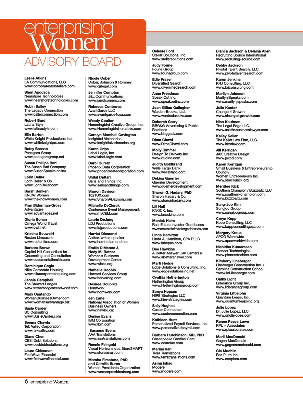 Enterprising Women formed its own “tribe” more than 17 years ago—just a couple years after the magazine was launched under the ownership of our publishing company. Our tribe is a strong national and international Advisory Board that guides our mission, provides valuable content for the magazine, and connects us with our shared business interests and bonds of friendship.