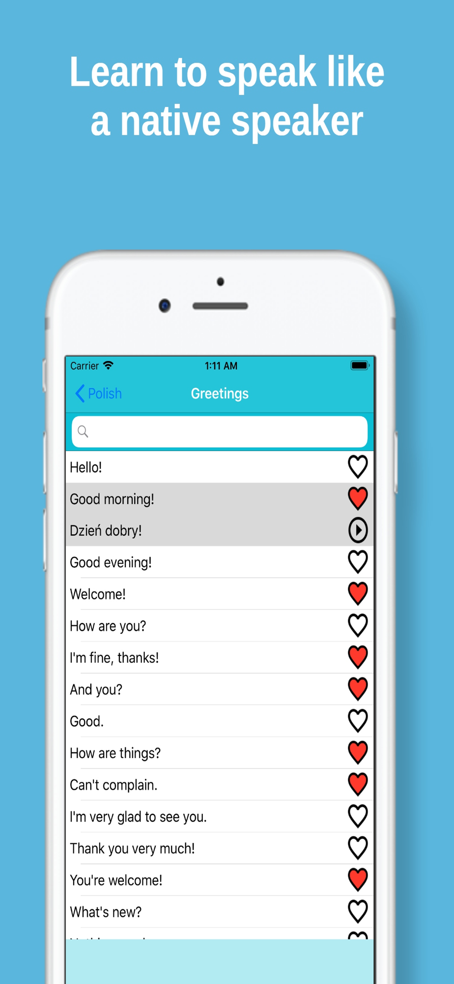 Learn Polish is a simple app for anyone who wishes to learn Polish fast and easy. It is perfect for beginners and advanced users. Recommended for those who wish to travel to Poland.