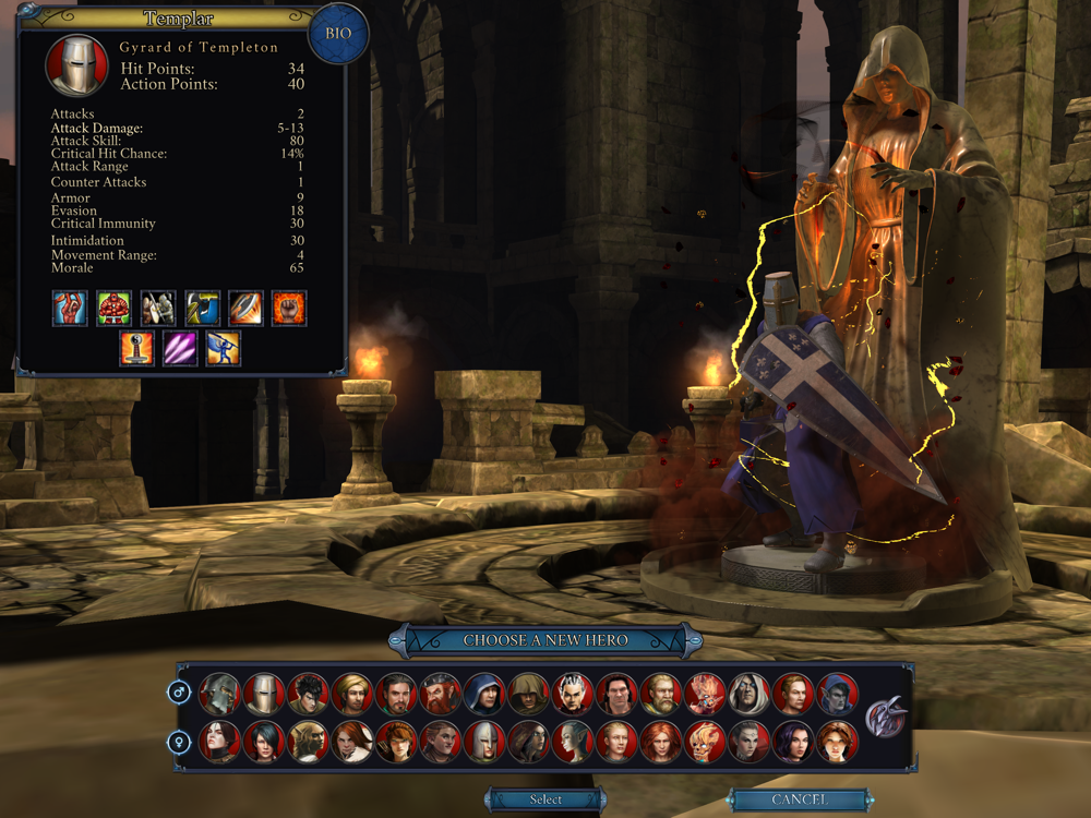 Build a party from among 16 different classes. Choose a party of six heroes that range from scholarly wizards to hardened warriors. Using each character type to their fullest is vital to securing victory as most excel in only certain tasks. Wizards have massively destructive magic but will fall quickly to a simple spear thrust while great warriors can hold off a horde if properly supported.