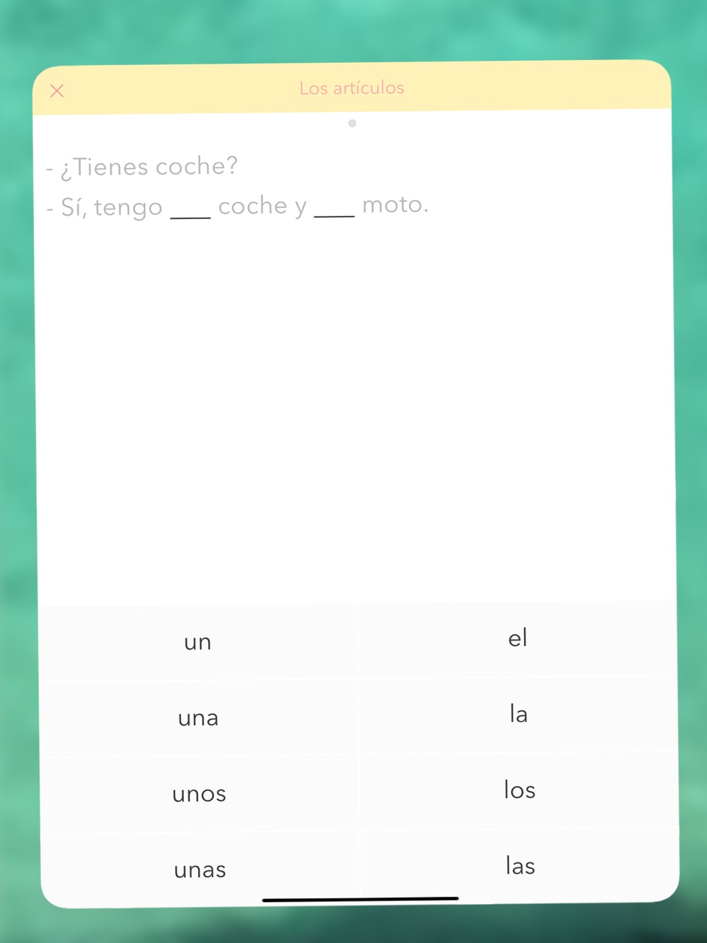 Me llamo Deberes. Yo soy una app para practicar el español. Soy una app perfecta para las personas que van a un curso de español A1. Con Deberes practicas la gramática, el vocabulario, los números, los artículos, las preposiciones y mucho, mucho más. Español A1 en una app.
