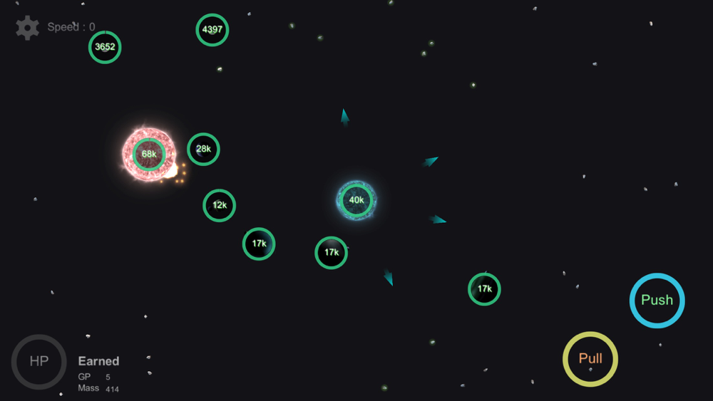 Roaming sandbox universe and discover wandering planets or solars, your solar system can earn GP and mass. GP is important to build your system. It is very easy to earn, simply roaming the universe and near other planets you will receive a GP.