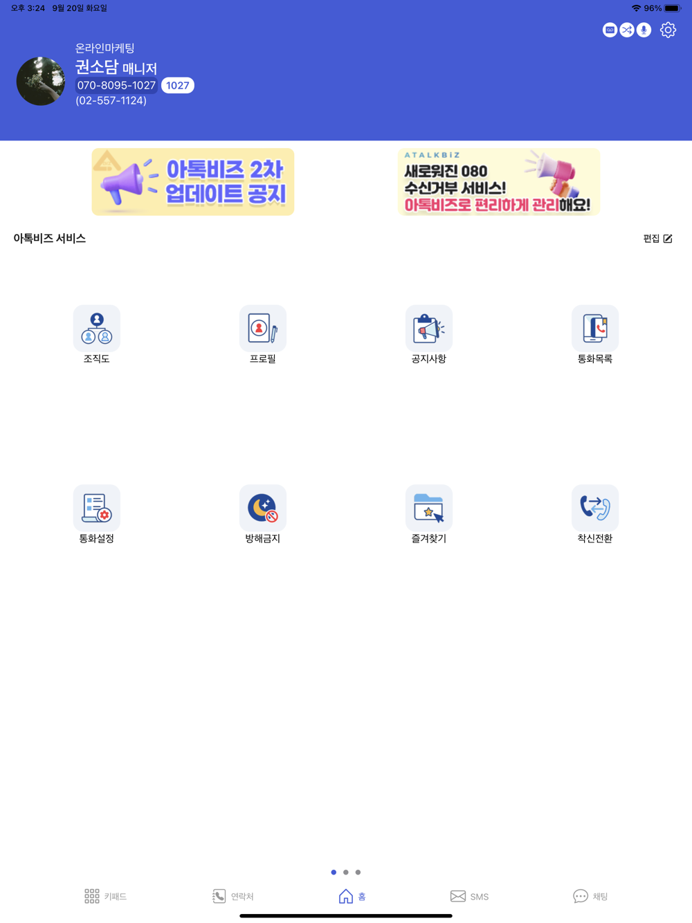 더 이상 책상에 유선전화기는 필요하지 않습니다. 기존 키폰시스템의 설치 및 유지보수 비용이 필요없는 아톡Biz 서비스를 이용해보세요. 스마트폰과 태블릿으로도 전화, 고객관리, 채팅,공지사항 조직도등 커뮤니케이션을 진행함으로써 위치에 구애받지 않고 언제 어디서나 교류 및 관리를 진행하실 수 있습니다.