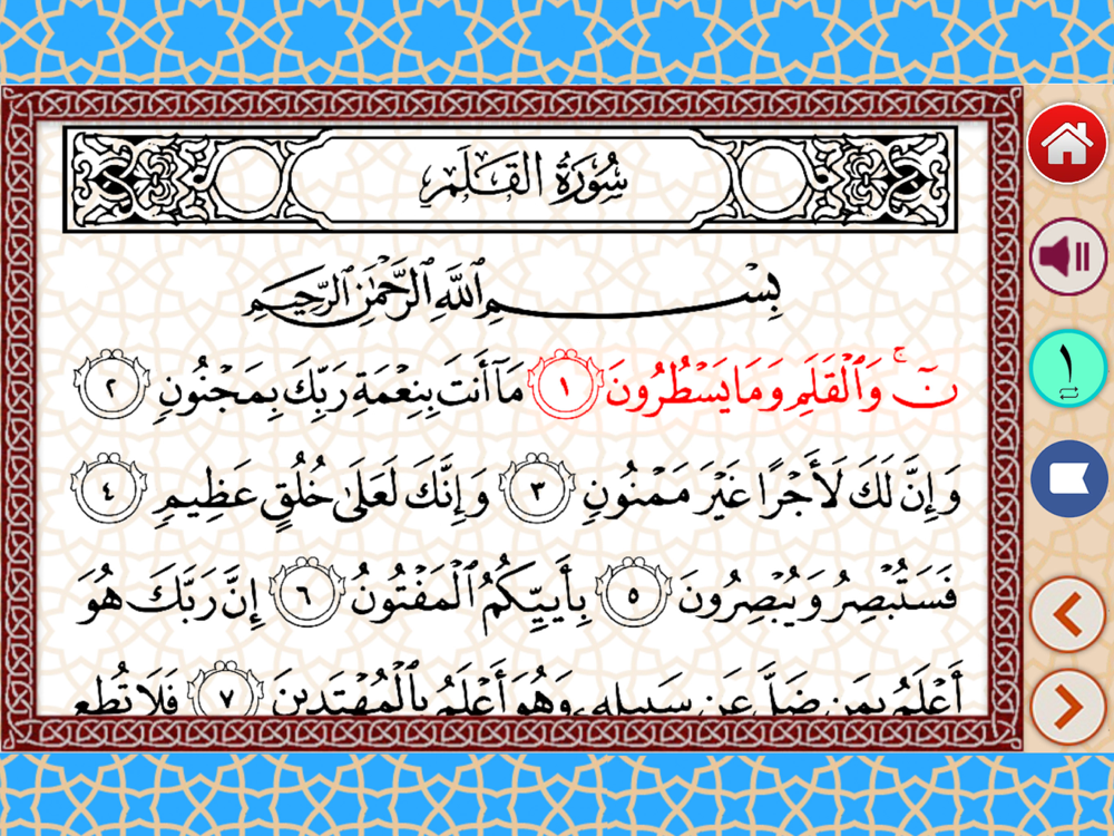 بطريقة تسهل الحفظ مع ميزة التكرار وتلوين الآية المقروءة
