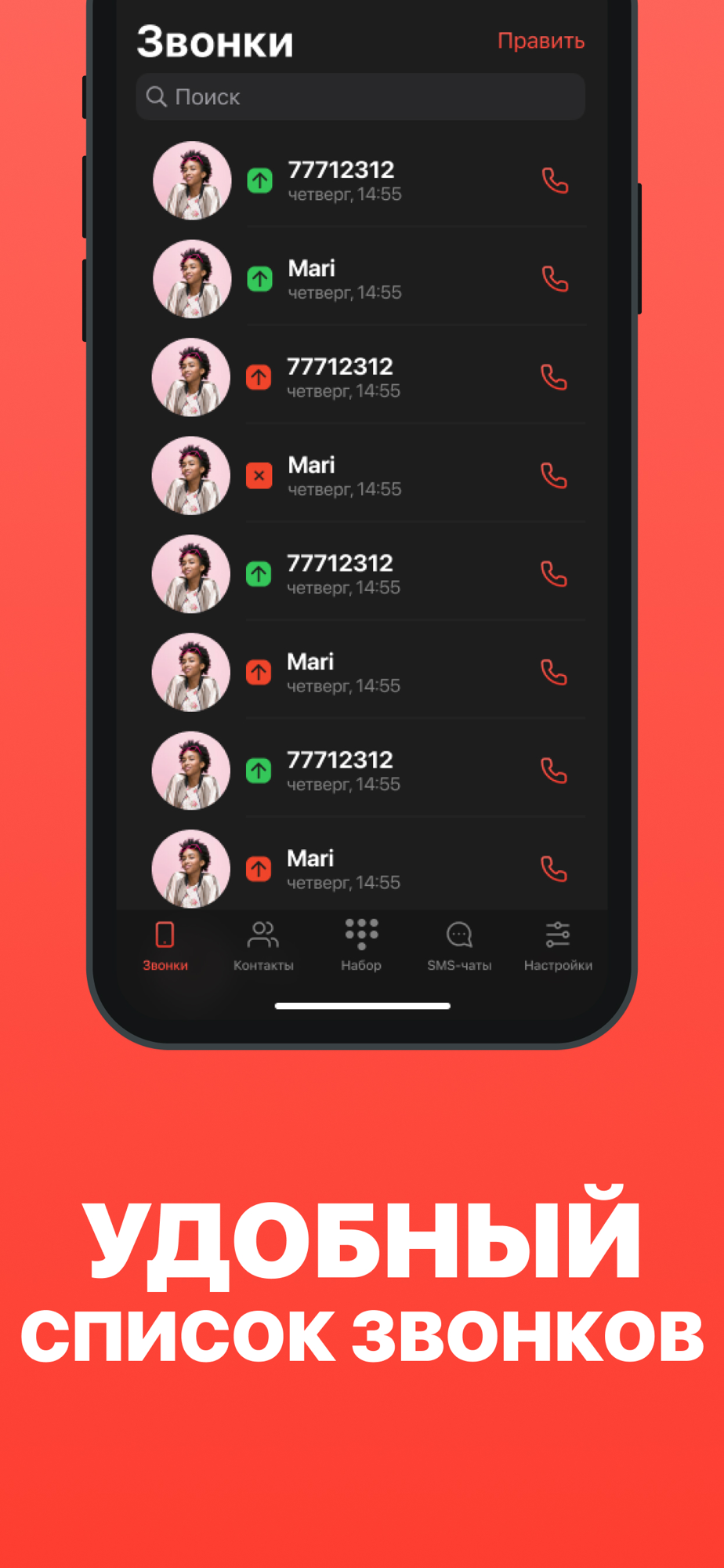 Позволяет звонить всем абонентам вне зависимости, установлено у них приложение или нет;