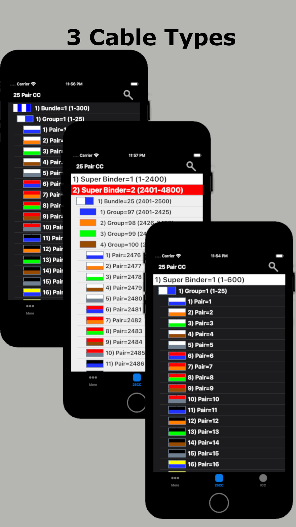 While not necessary to use in the app. You can enter a full complex cable count that can be split into the cable type of your choice (common 25 pair, 100 pair bundle or 300 pair bundle).