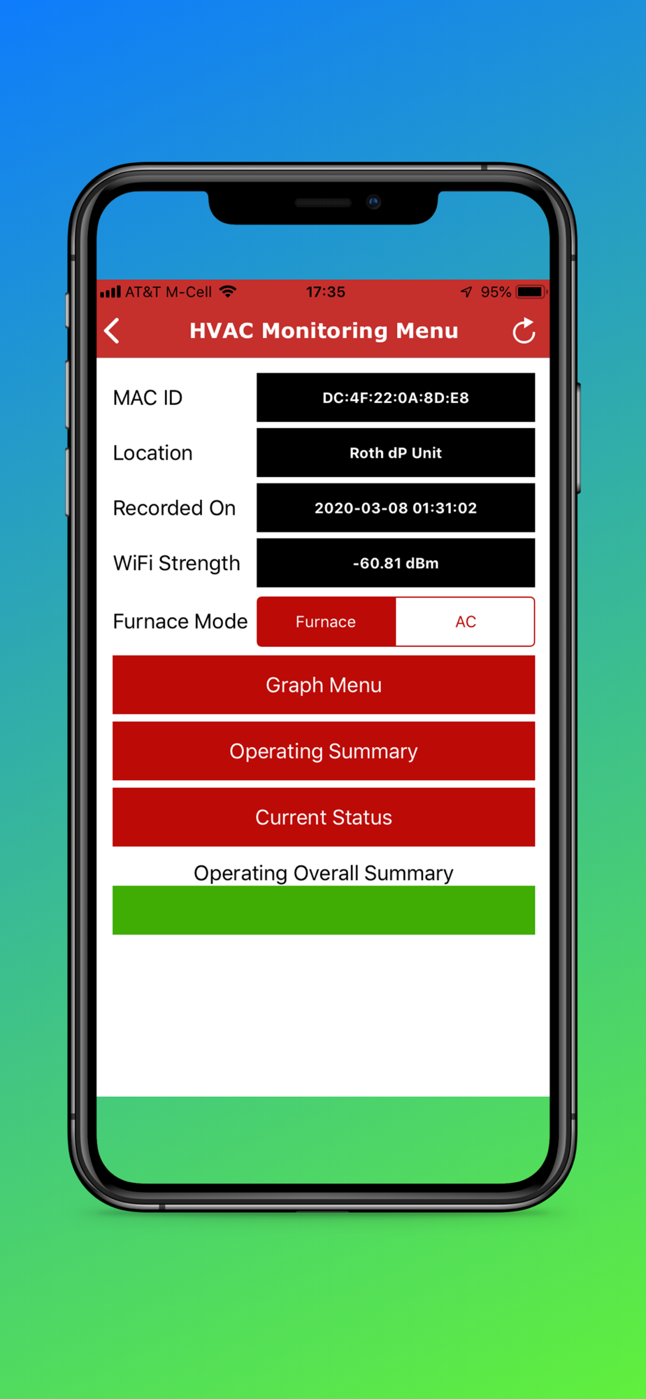 The Application provides support for monitoring multiple units and also for Heat (Furnace) and Air Conditioning mode. Screenshots provided illustrated Furnace/Heat mode -- equivalent screens are generated by the application for AC Mode.