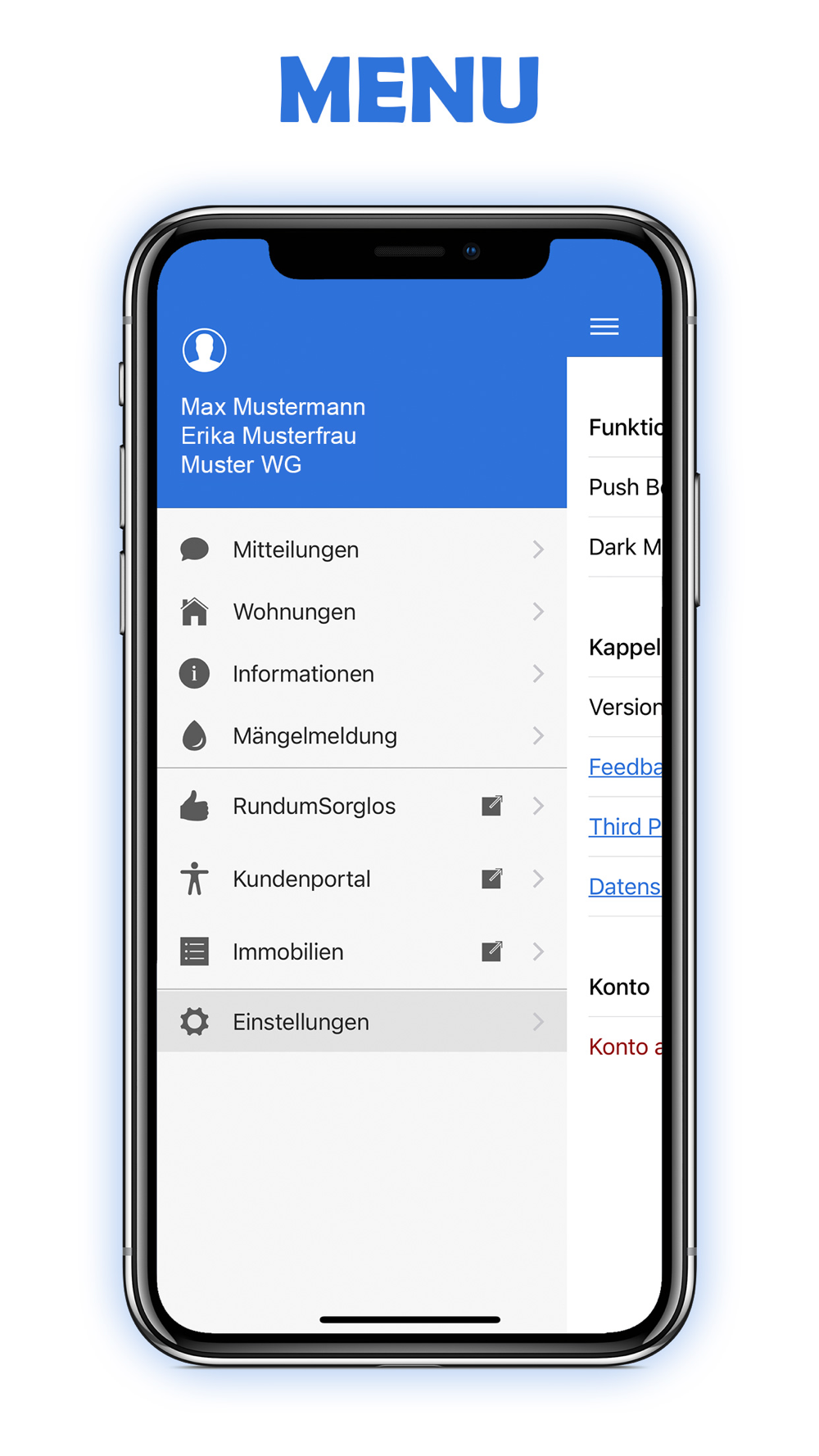 - Mängel- bzw. Schadensmeldungen direkt via Smartphone inklusive Fotos an die Hausverwaltung