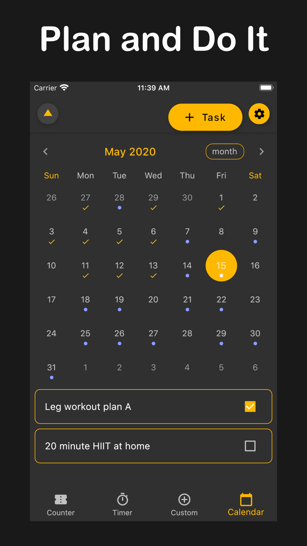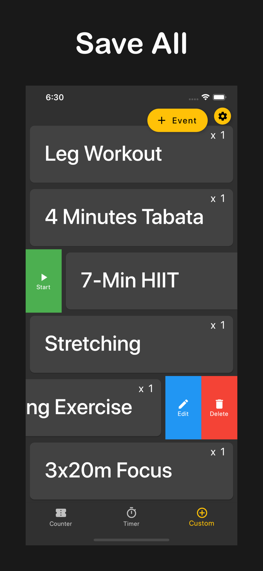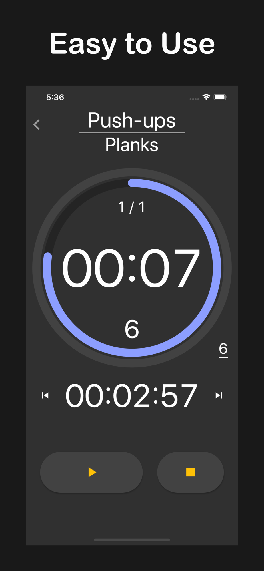 • Besides the custom timer, the app also provides quick access to standalone interval timer/counter functions for simpler routines.
