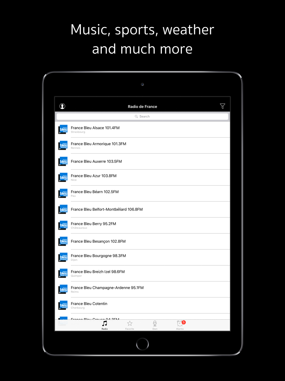 With Radio de France, you can easily listen to live streaming of news, music, sports, talks, shows and other programs of France. Radio de France offers tremendous depth and breadth of stations with genres ranging from Alternative, Electronica, Metal to Jazz and Classic across a broad set of languages including Italian, Spanish, French, German, Russian and Portuguese. At the same time, application has public radio, talks about business and analytics.