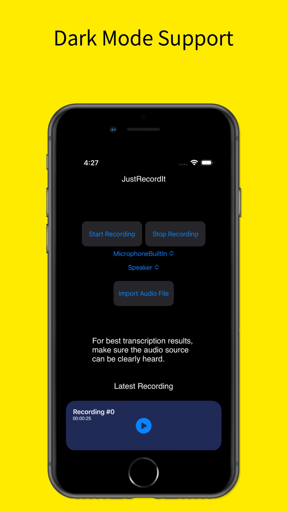 JustRecordIt is your go-to choice for mobile Audio Recording. Import recordings from any source or location effortlessly. No matter where your audio files are stored, our app ensures you have easy access to them for further editing or playback.