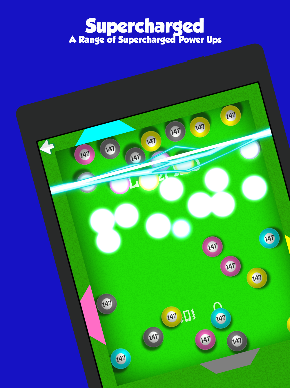Every level there is an added ball to pocket. Take your shot. A range of supercharged ‘power ups’ become available throughout the game.