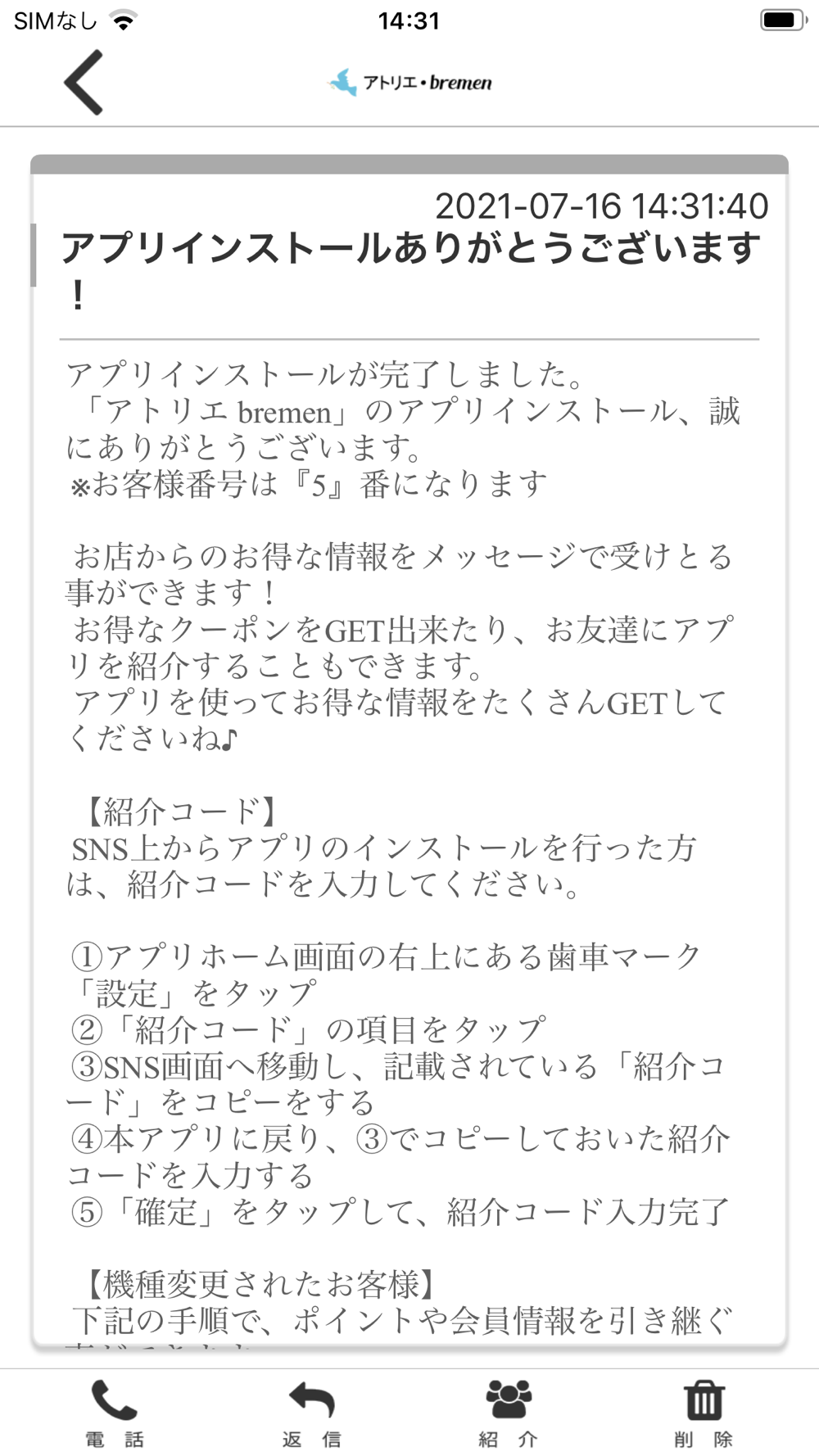 bremenのアプリをSNSを通じてお友達に紹介する事ができます。