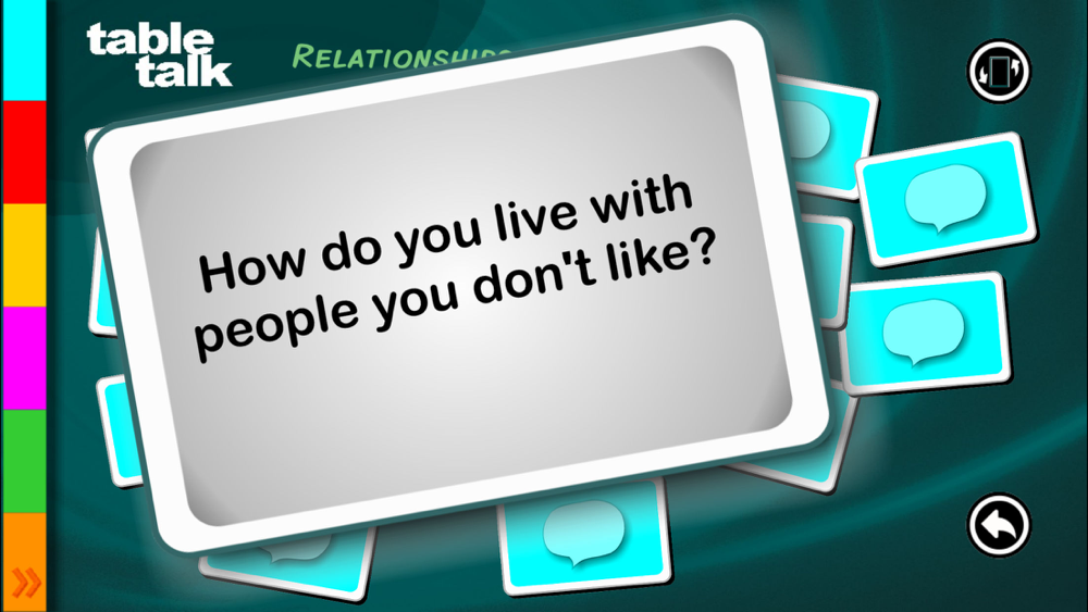 In playing Table Talk, players are given an opportunity to explore some of life's big and not-so-big questions, articulate their views, and to engage with the opinions of others.