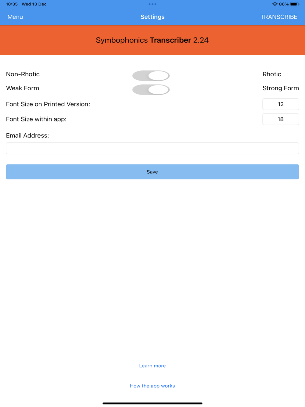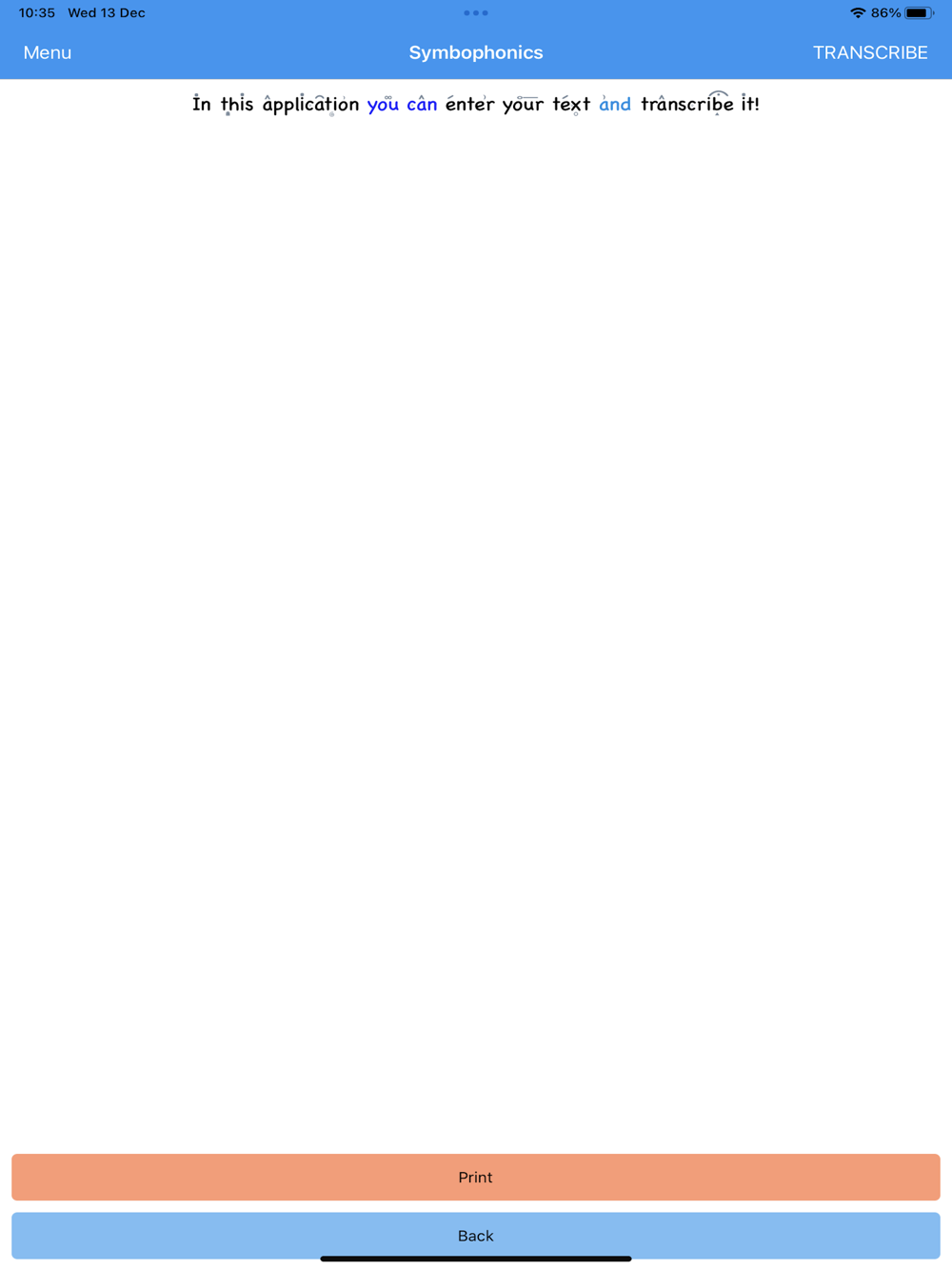 This application will allow you to take your plain text and submit it for transcription to Symbophonics.