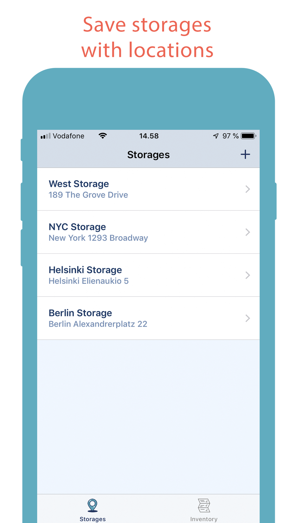 - Save inventory results as reference book of goods and list of quantities for each item with the date and time of the inventory.