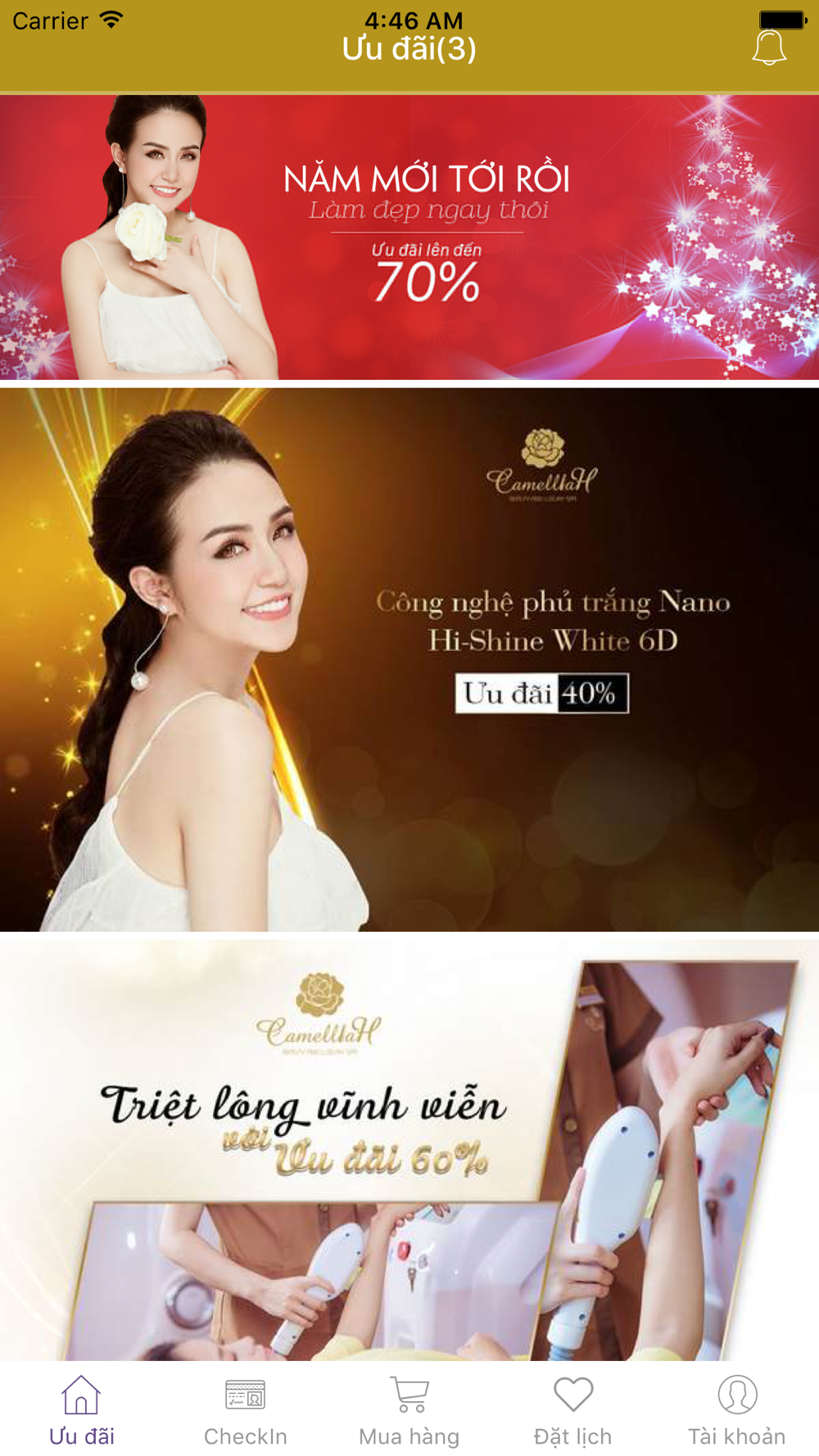 - Xem các thông tin khuyễn mại và chăm sóc khách hàng của Camellia H