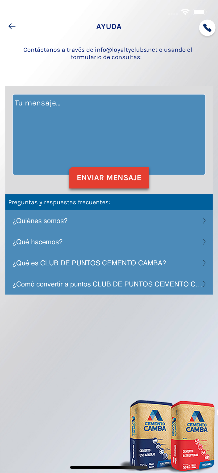 Bienvenidos al Club de puntos Cemento Camba, estamos unidos para darte más beneficios, más servicios y todo en un APP gratis. Con tu APP Club de puntos Cemento Camba convierte tus beneficios en dinero. Todos los clientes obtienen puntos en cada compra que realicen en las empresas afiliadas, estos puntos te benefician inmediatamente en dinero a tu cuenta canjear de manera directa.