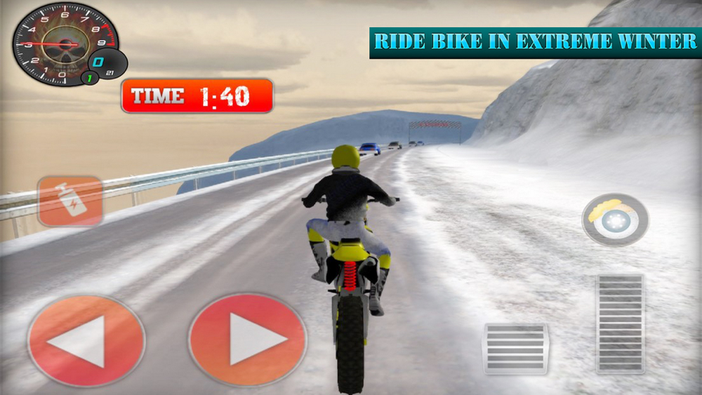 Winter Skill Driving Motorcycle is a all new action-packed, exciting, motorbike simulator. Time to unleash your off-road motocross dirt bike skills on some of the most eXtreme winter snow covered mountain roads. Avoid falling rocks and treacherous cliffs as you race your motor cross sport bike as far as you can go.