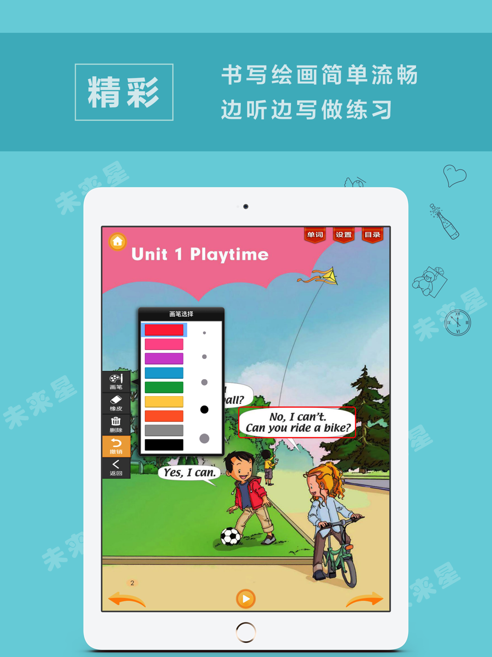3、书写绘画简单流畅,边听边写做练习!