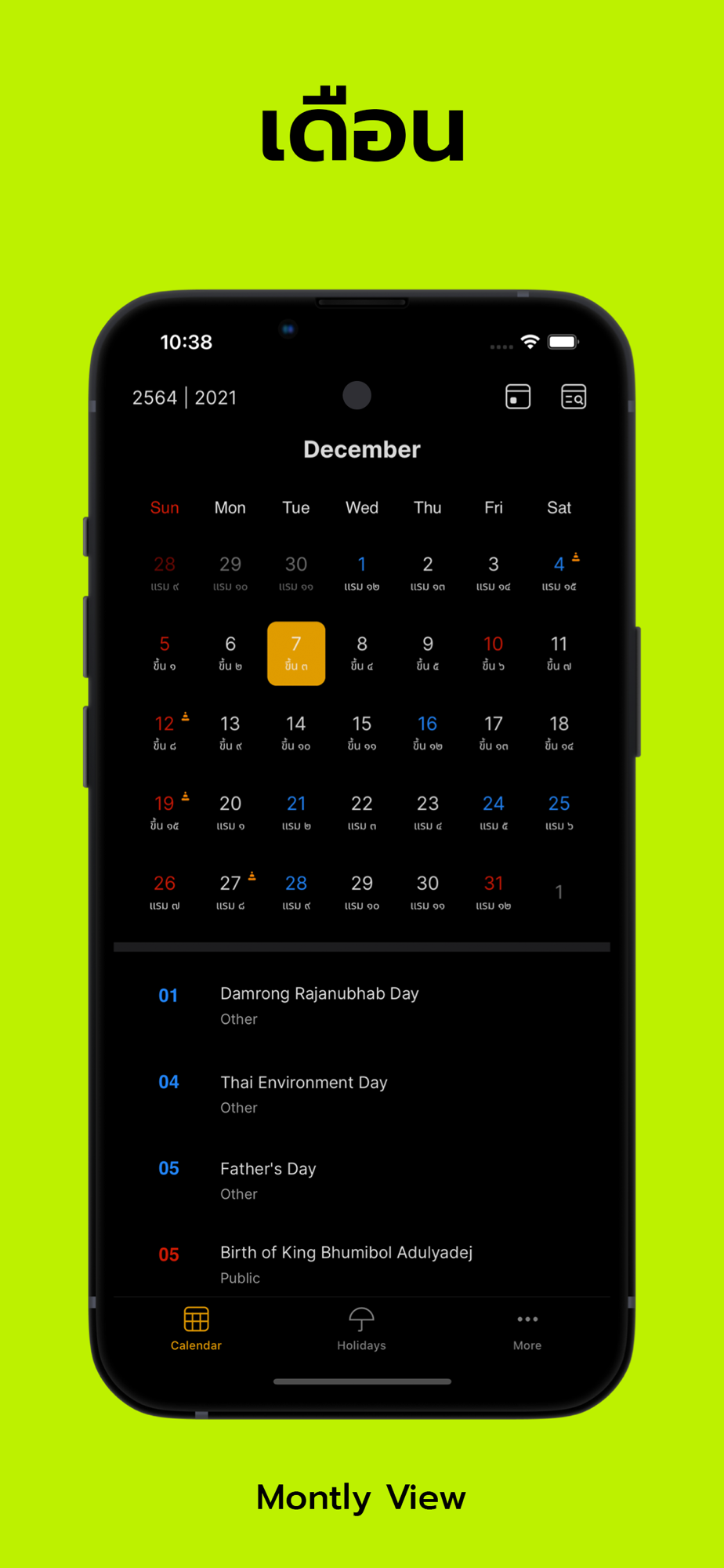 Thai Buddhist Calendar contain holiday and buddhist holy days from 2443 to 2643. With this app, you can check buddhist holy days easily by change date to any year.