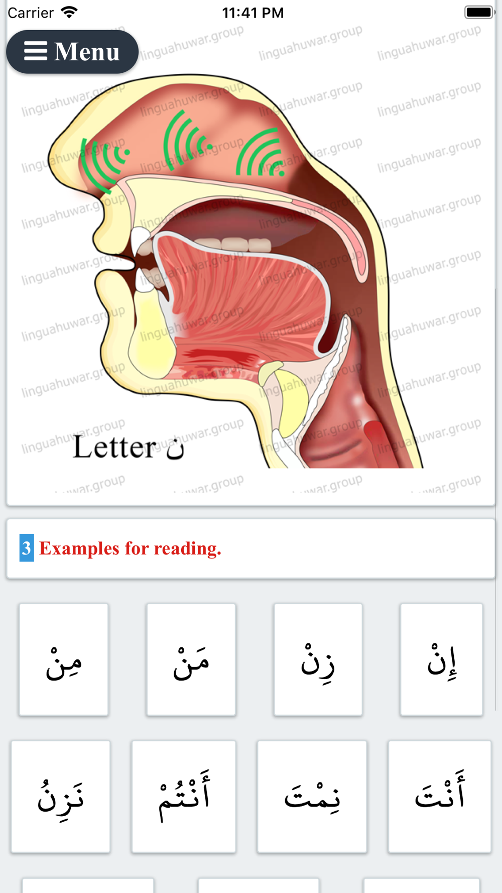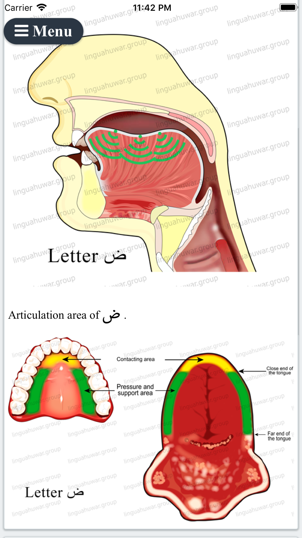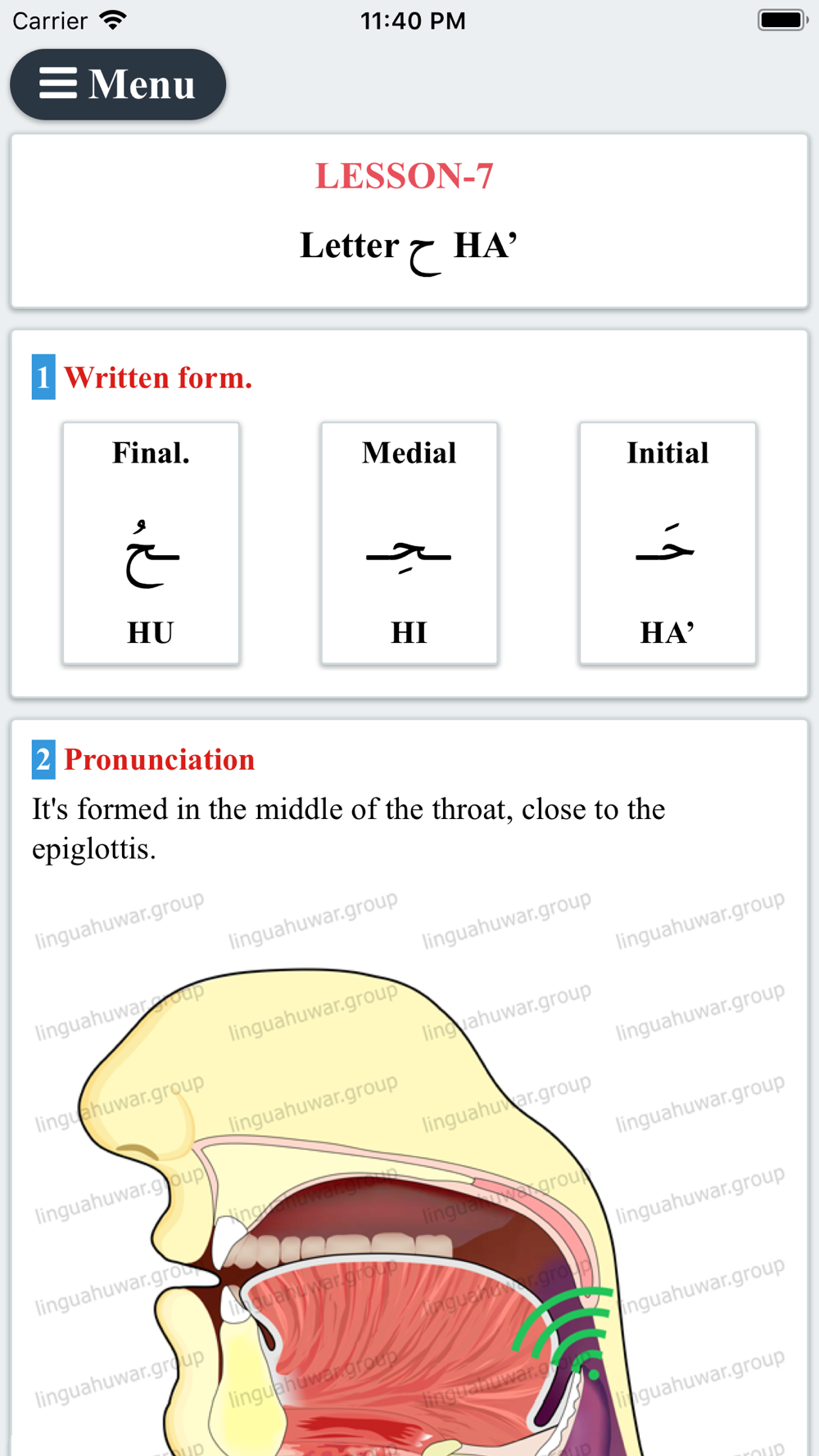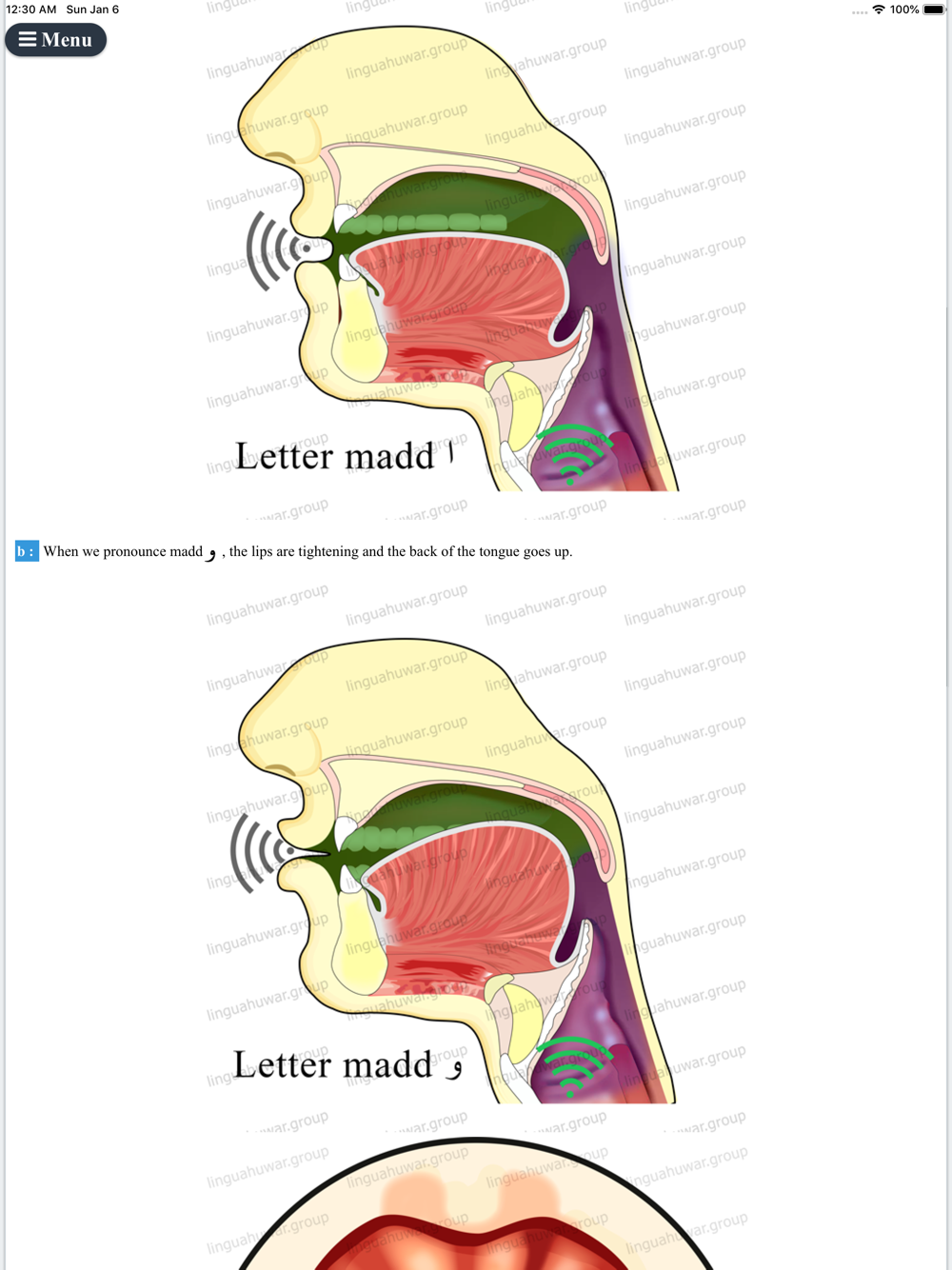 This app is self-teaching. The content is written in simple way so that it's possible for the user to learn every lesson without a teacher. There are 41 lessons in this app. After studying all the lessons, you will be able to read any arabic text with diacritics.